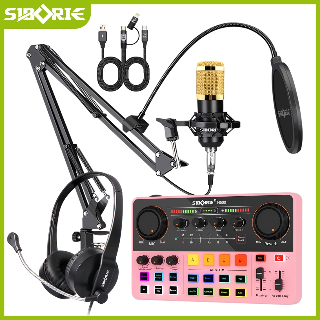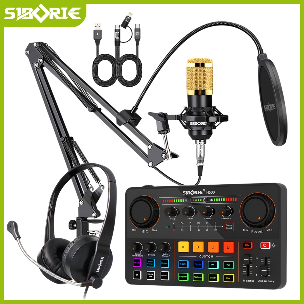 Siborie Paket Komplit Soundcard H500+BM800 Mic+H2 Headphone+OTG-2 IN 1 Set With Kurung Kantilever