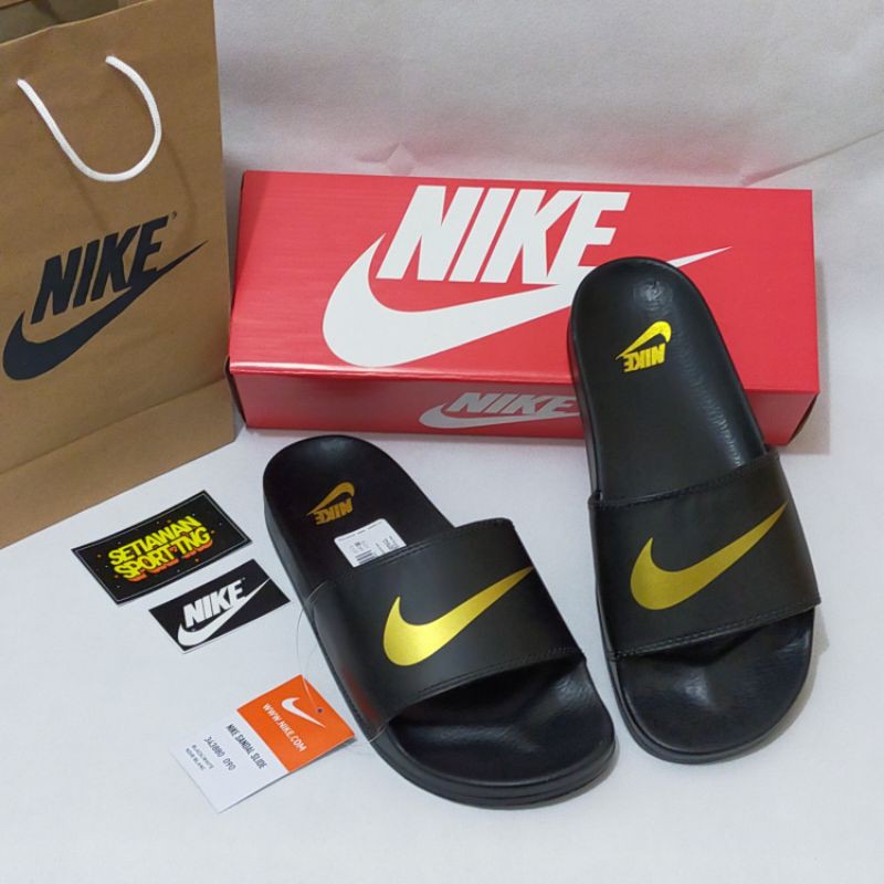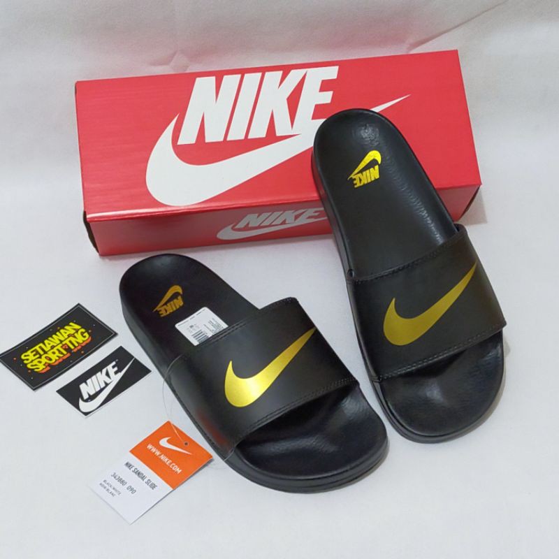 FREE ONGKIR NIKE BLACK GOLD FULLBLACK SANDAL SLIDE PRIA WANITA