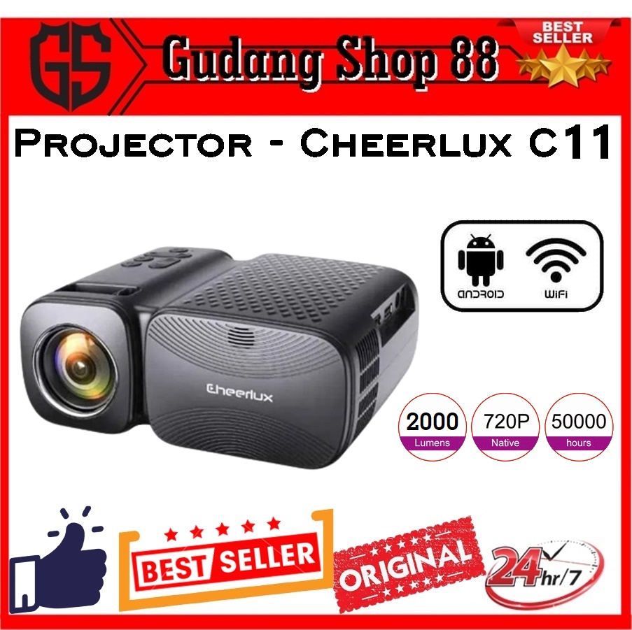 Proyektor Cheerlux C11 Android WiFi Mini LED Projector 2000 Lumens Wireless Mirroring