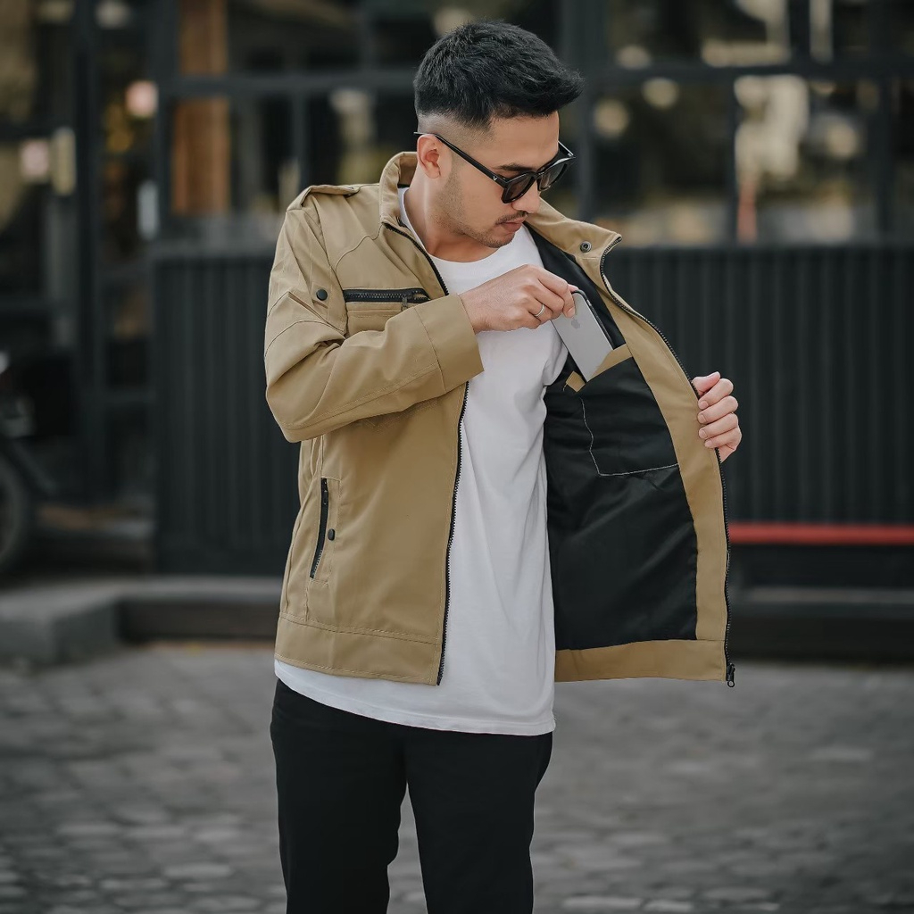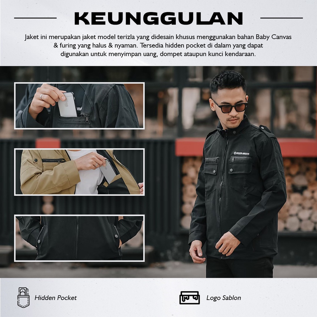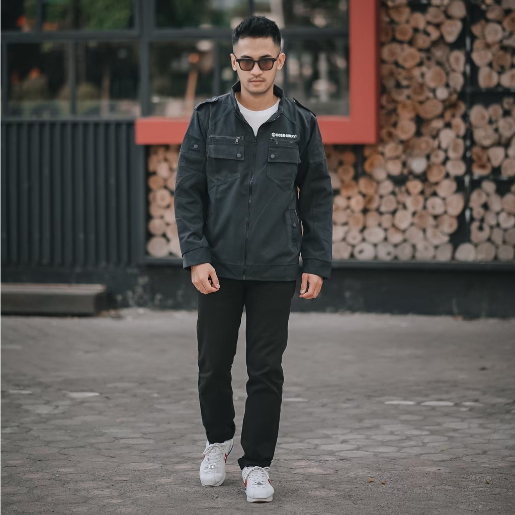 Jaket Casual Jacket Pria Polos Canvas Sleting Saku Dalam Tebal Terizla
