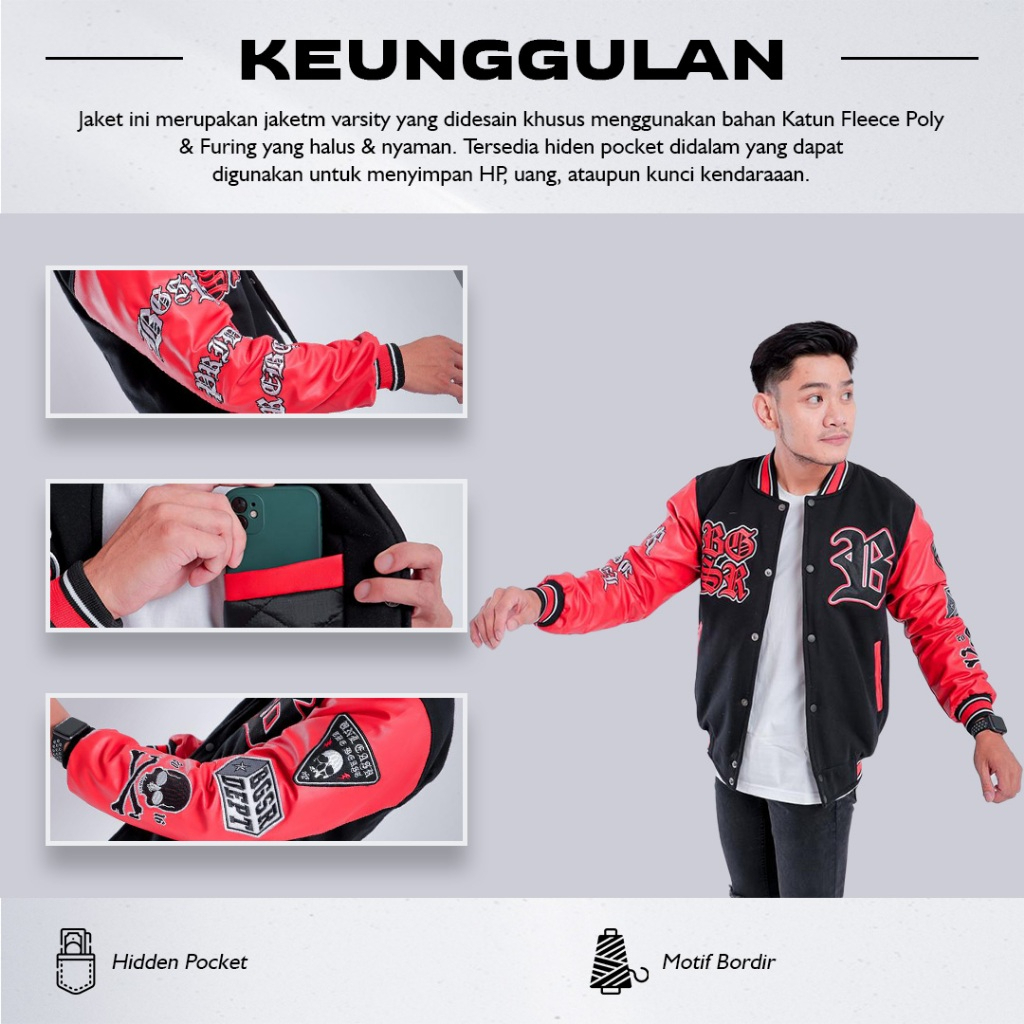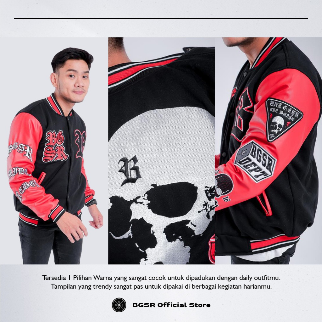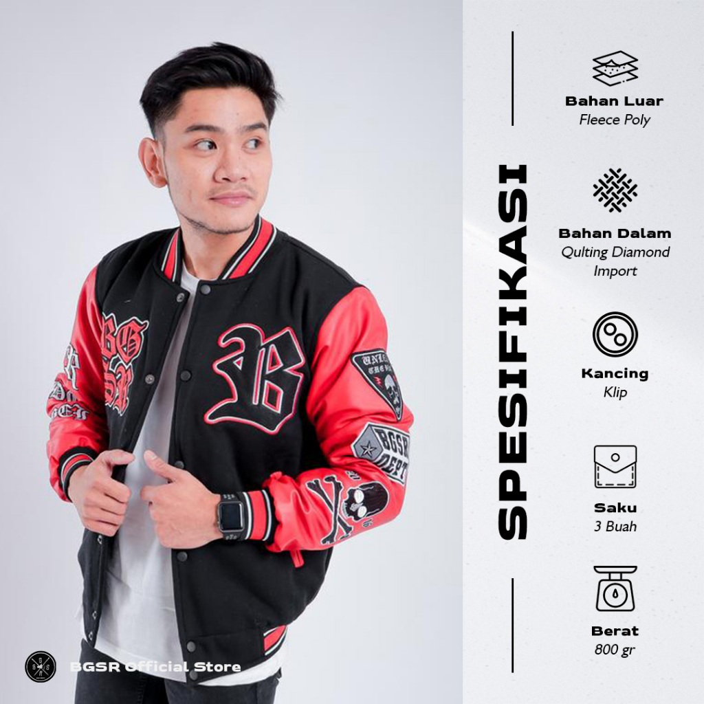 BGSR Jaket Varsity Motor Winbreaker Pria Hitam Merah Jacket Baseball Premium Keren REDDEVIL Original
