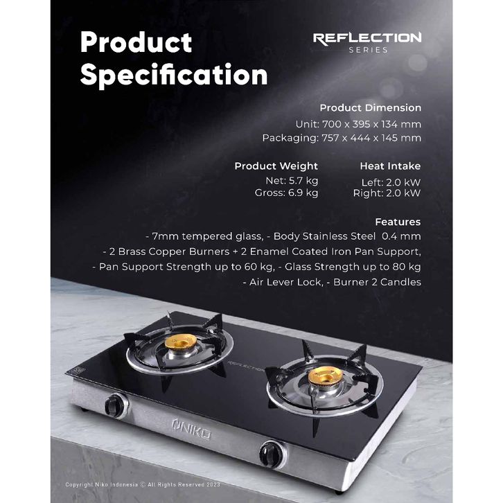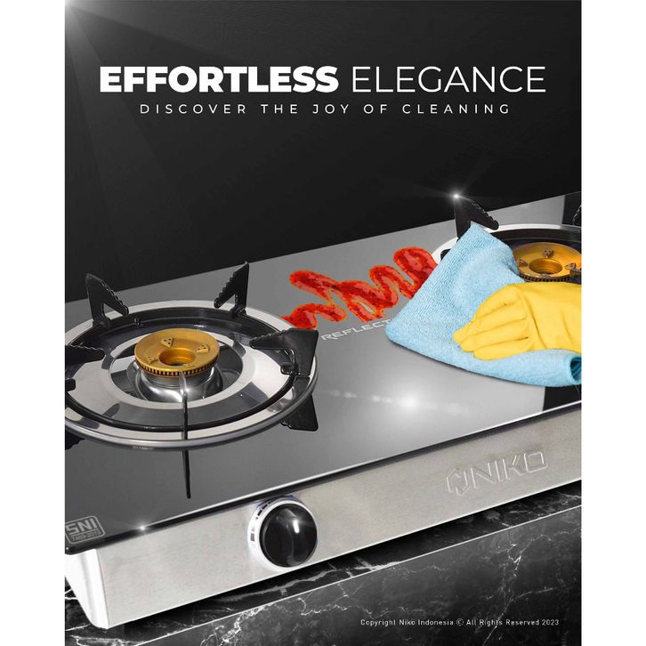 KOMPOR GAS 2 TUNGKU NIKO REFLECTION 4 KOMPOR KACA ANTI PECAH
