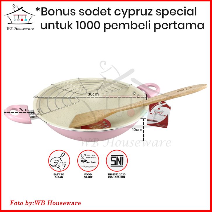 SUPRA wajan anti lengket 30cm pastel pink series / wok set white marble + peniris / panci kuali