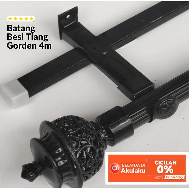 Batang Besi Tiang Gorden 3m 4m Double Full set Lengkap Rell Vitrase Ukuran 3 Meter 4 Meter