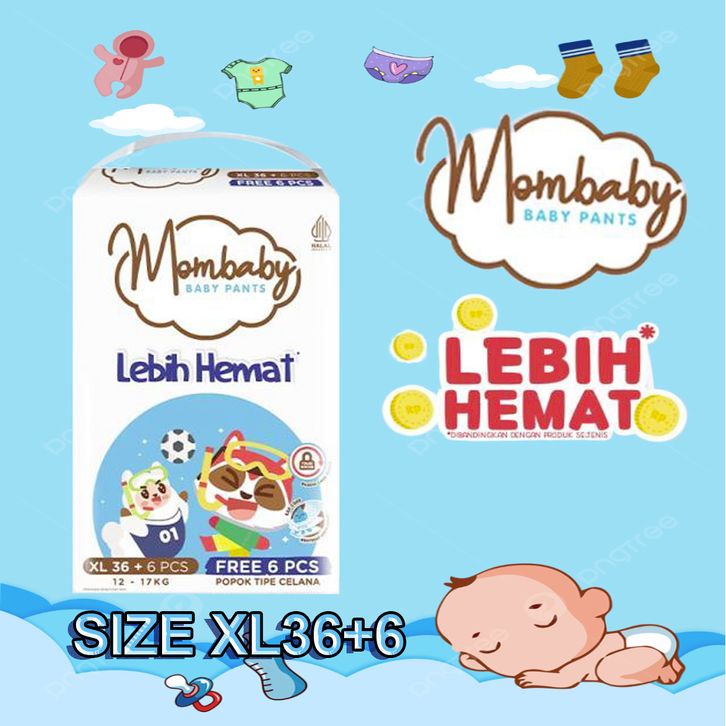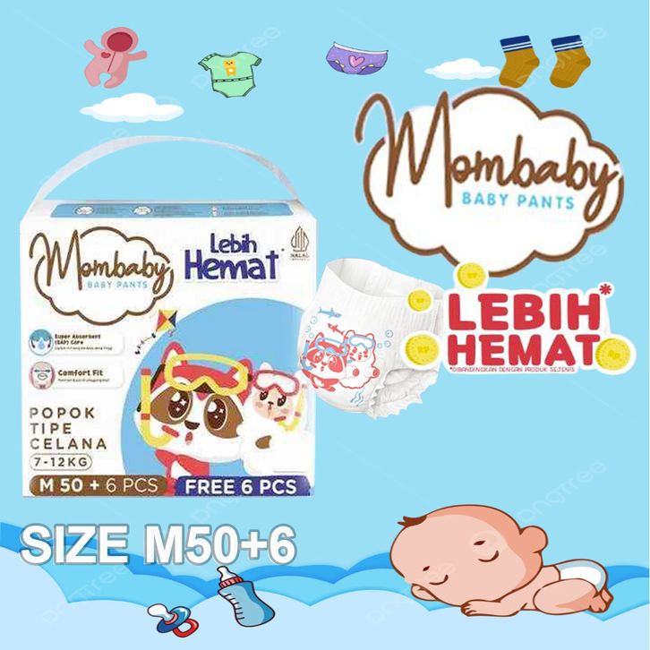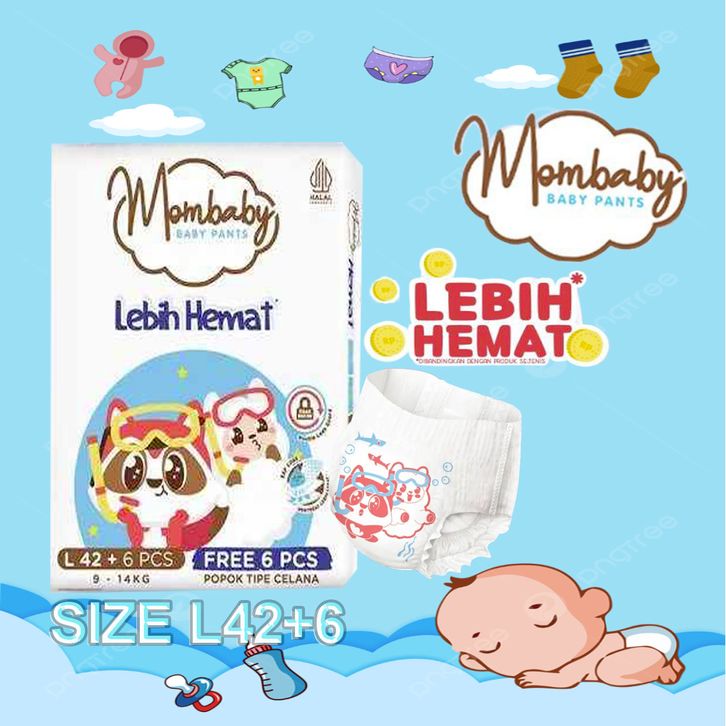 (1 Ball ) MOMBABY PANTS S54+6 M50+6 L42+6 XL36+6 XXL32+6 POPOK CELANA