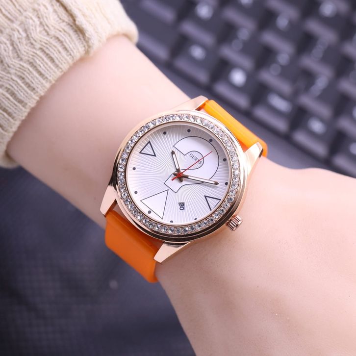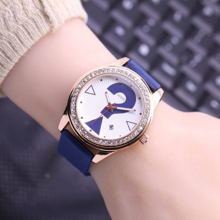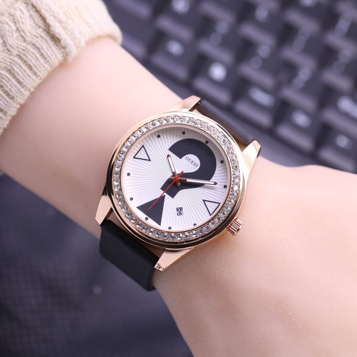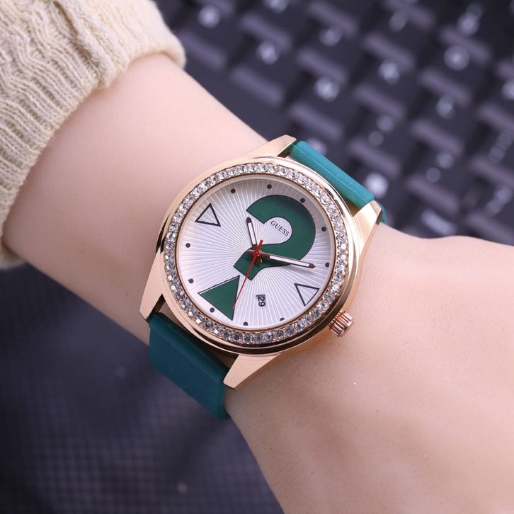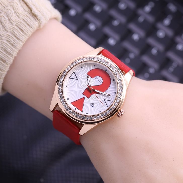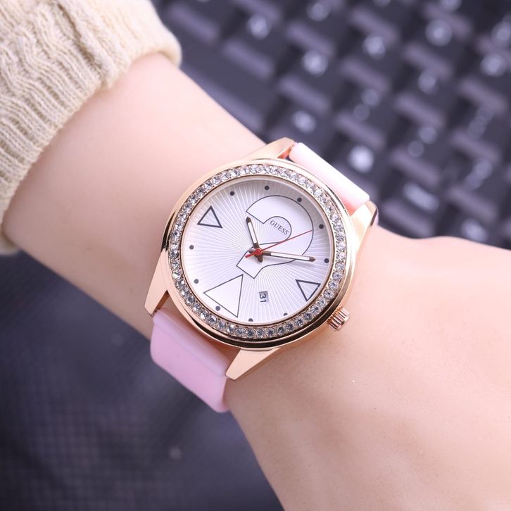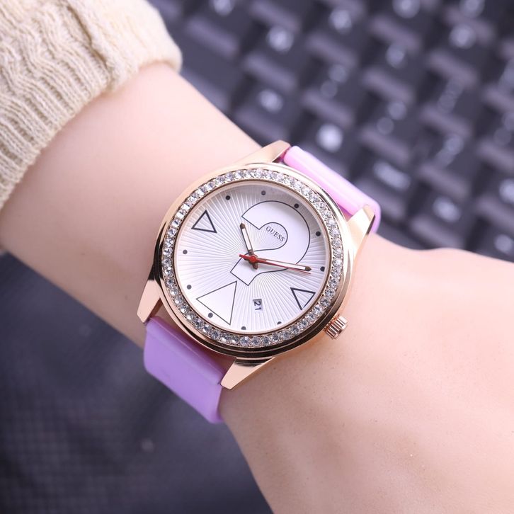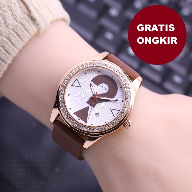 JAM TANGAN WANITA GUESS STRAP KARET RUBBER TANGGAL AKTIF FREE BOX KOTAK JAM || JAM TANGAN FASHION CEWEK