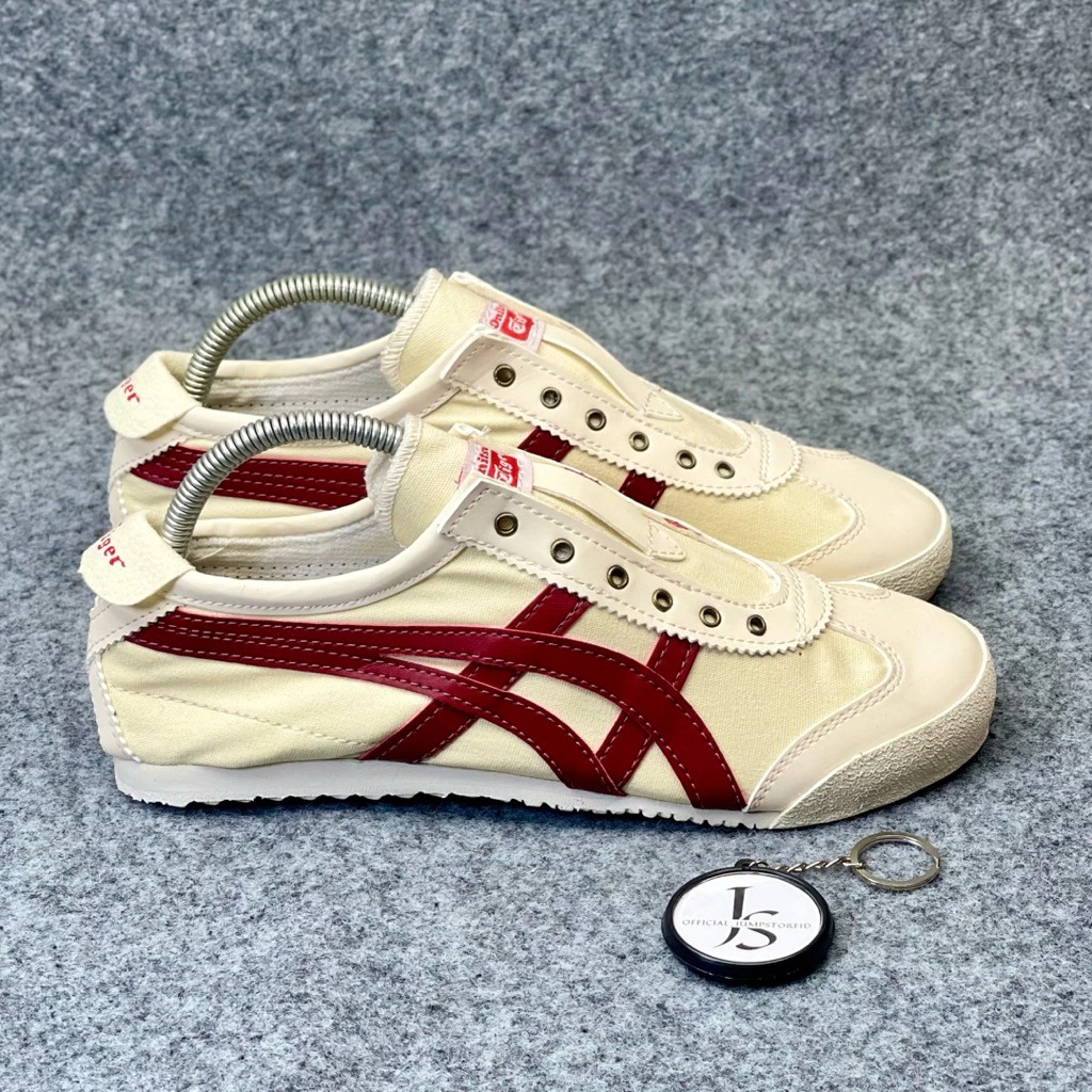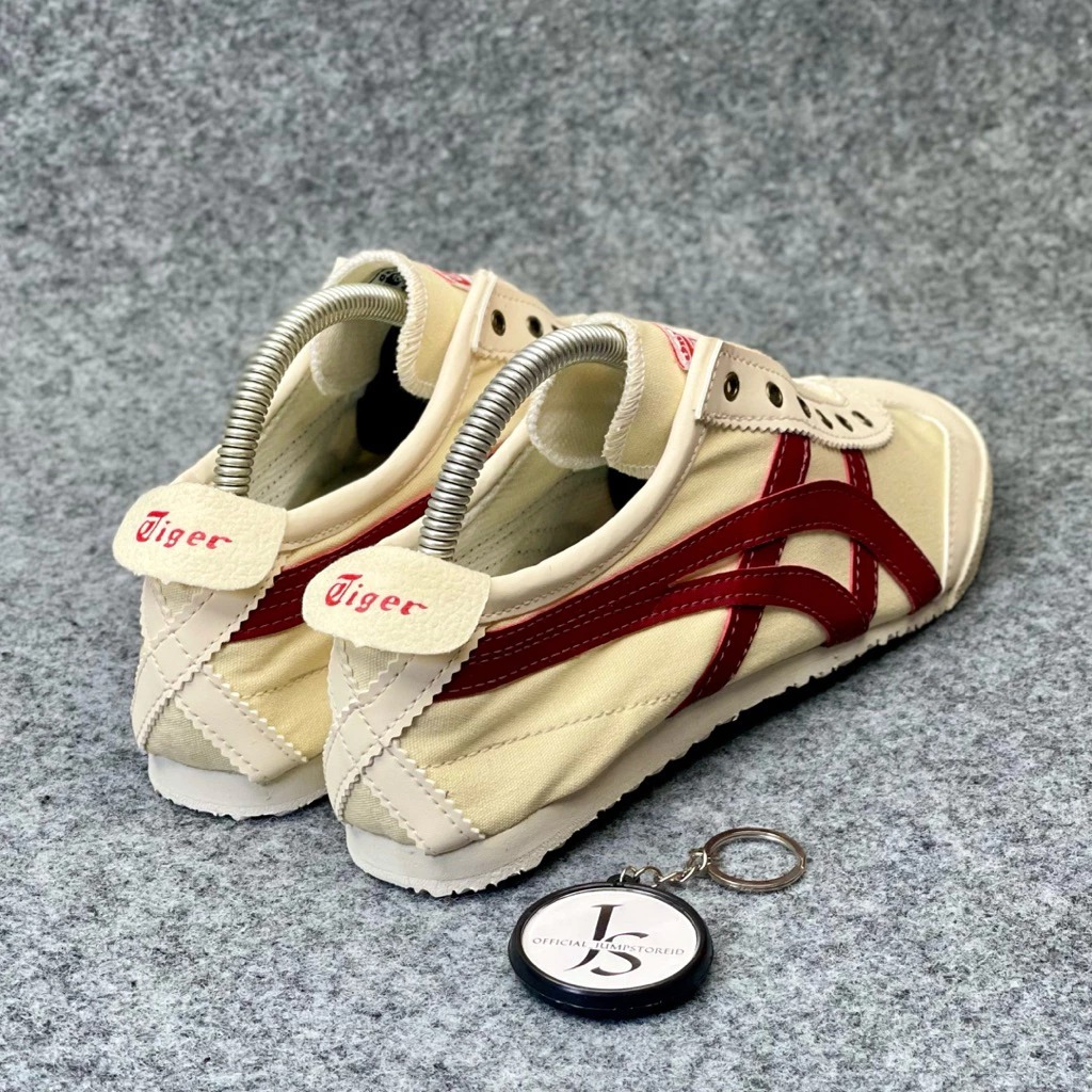SEPATU PRIA/WANITA ONITSUKA TIGER SLP ON Cream Maroon PREMIUM FREE PAPERBAG