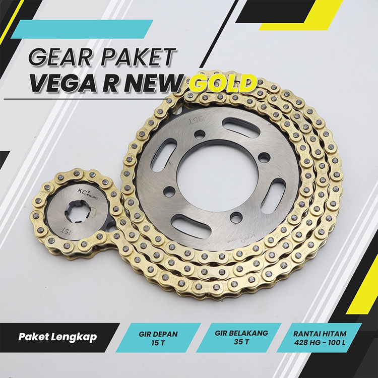PAKET GIR SET GOLD VEGA R NEW 15T/35T 428HG-100L GEAT SET GIRSET GEARSET VEGAR NEW