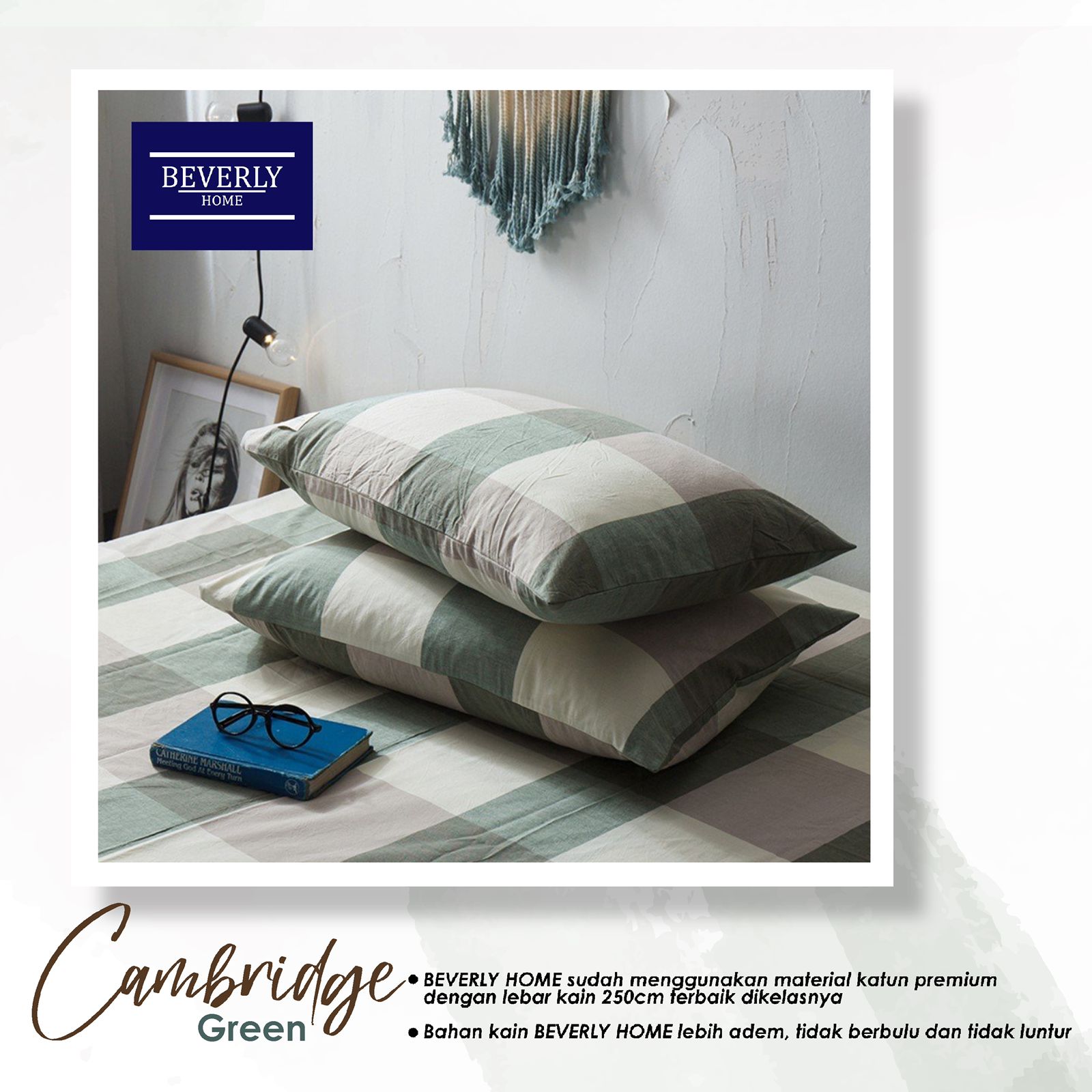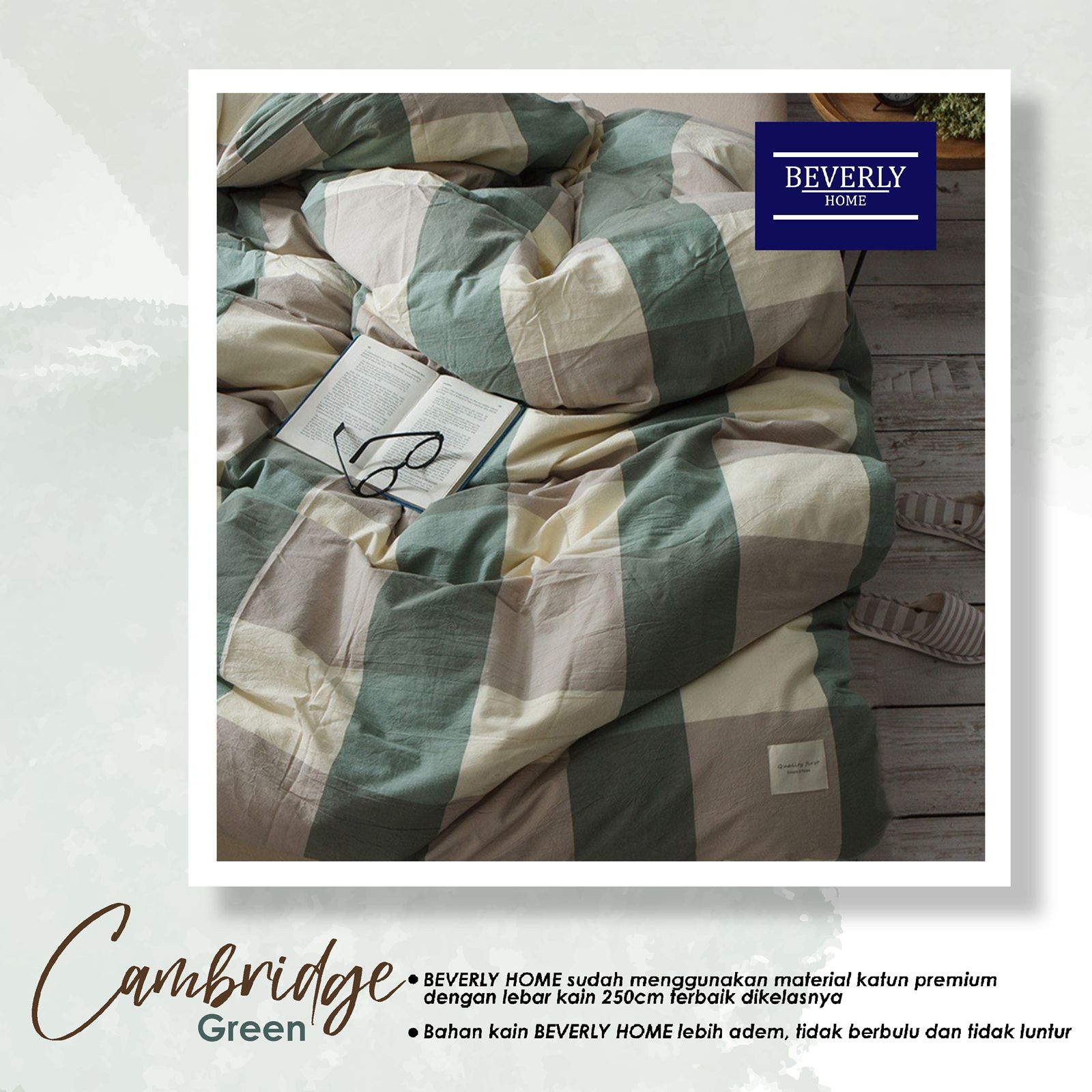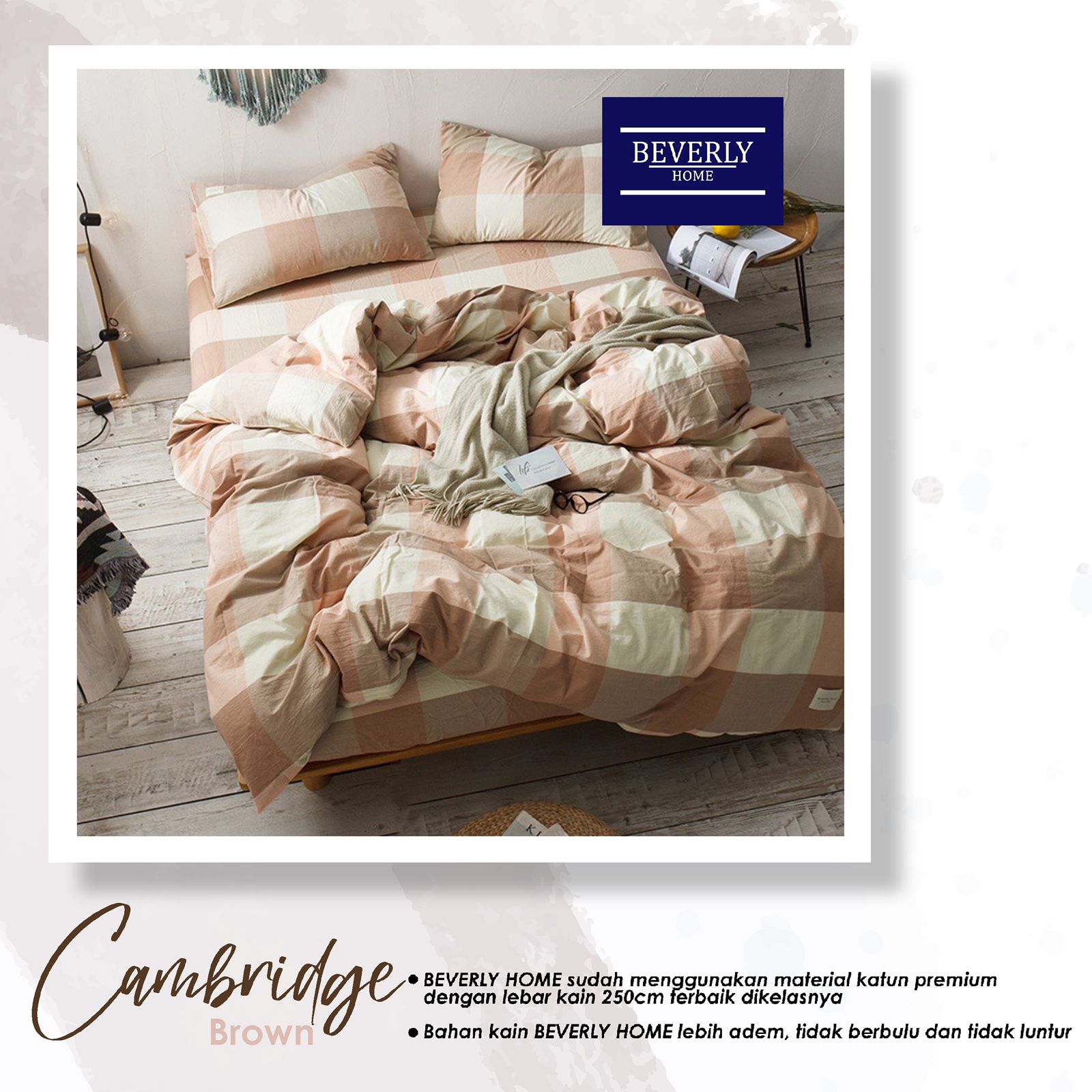 Bedcover Sprei Katun Beverly Motif Kotak Cambridge