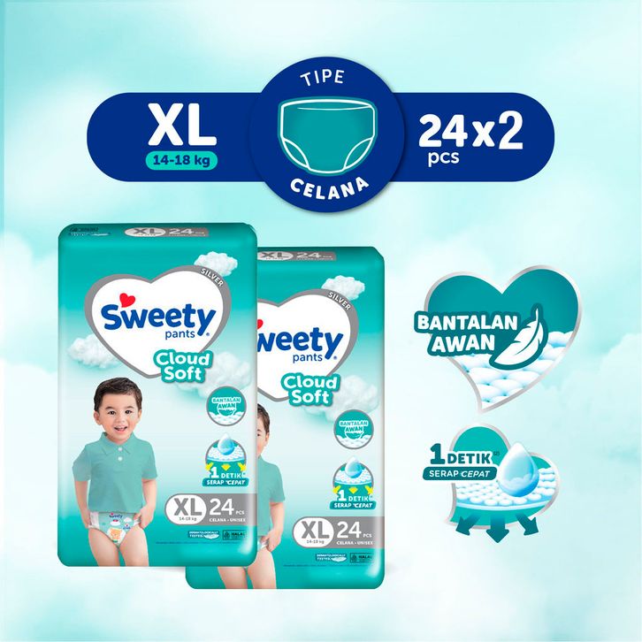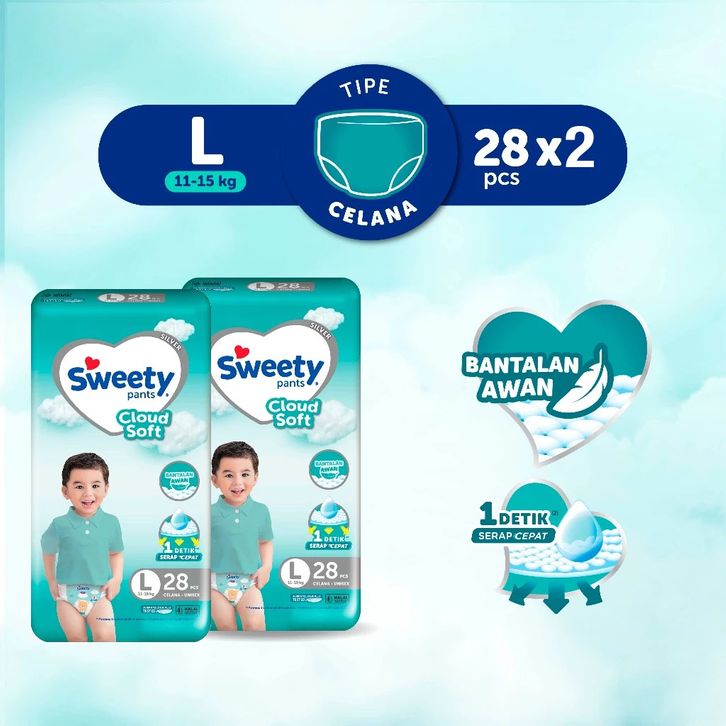 Paket 2 BALL Sweety Silver Pants NB-S40 S38 M32 L28 XL24 XXL22 POPOK CELANA X 2 PCS