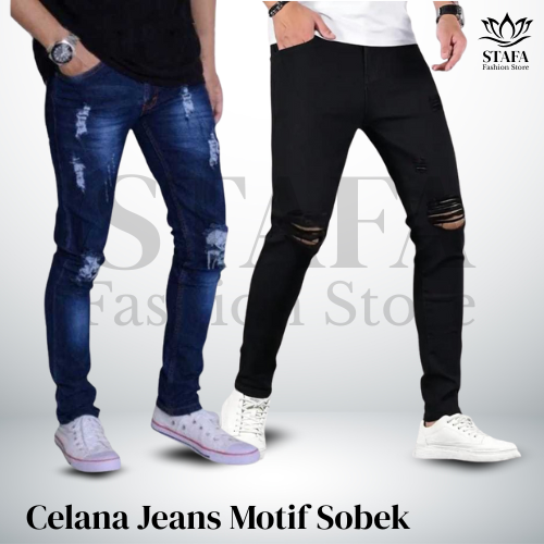 CELANA JEANS PRIA ORIGINAL SOBEK - RIPPED JEANS - CELANA SLIM FIT PRIA MOTIF ROBEK / YARRA FASHION