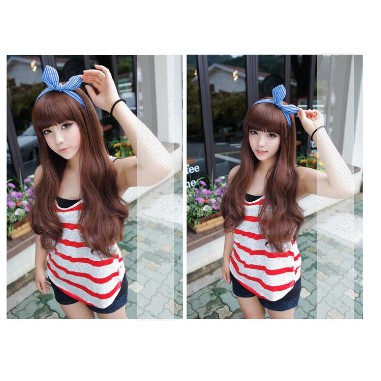 FREE ONGKIR WIG WANITA PANJANG CURLY BERPONI KOREA STYLE RAMBUT PALSU