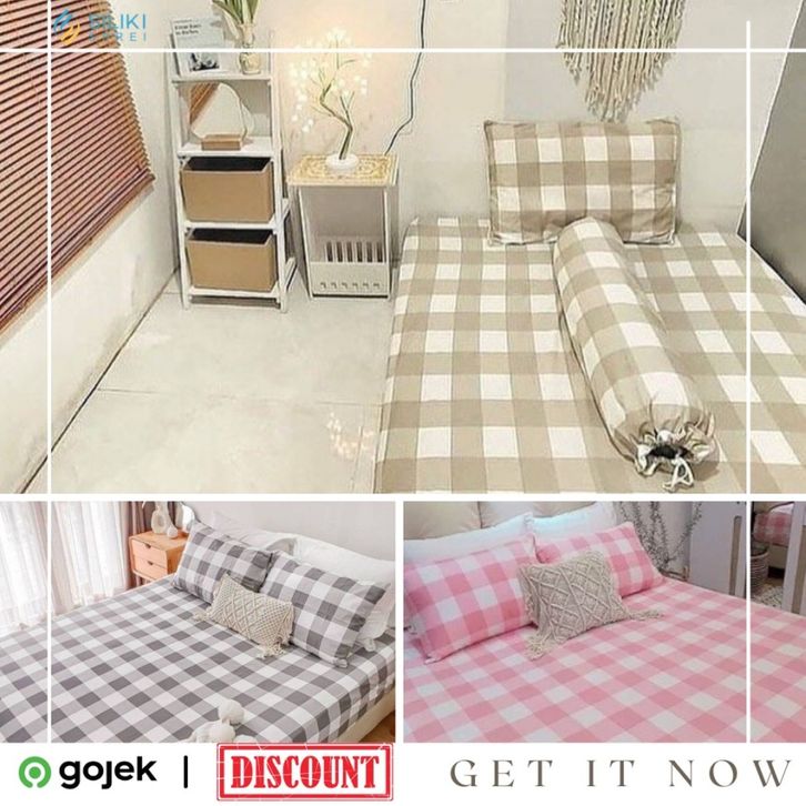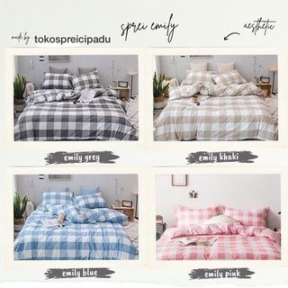 Bedcover Sprei Aesthetic Korea Sprei Katun Motif Emily Kotak Uk 180x200 Uk 160x200 Uk 200x200