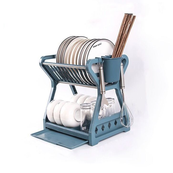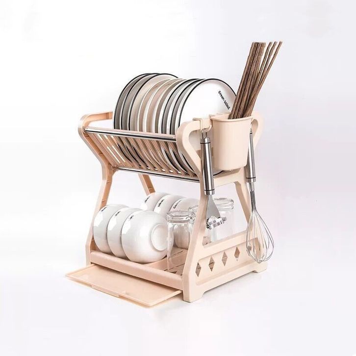 Rak Piring 2 Susun Plastik/Rak piring Dapur Baskom Rak Pengering Piring