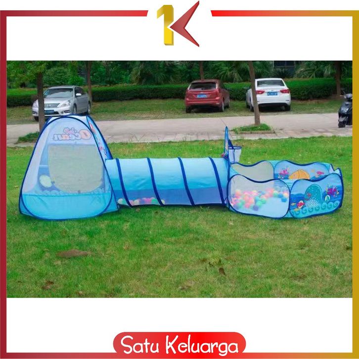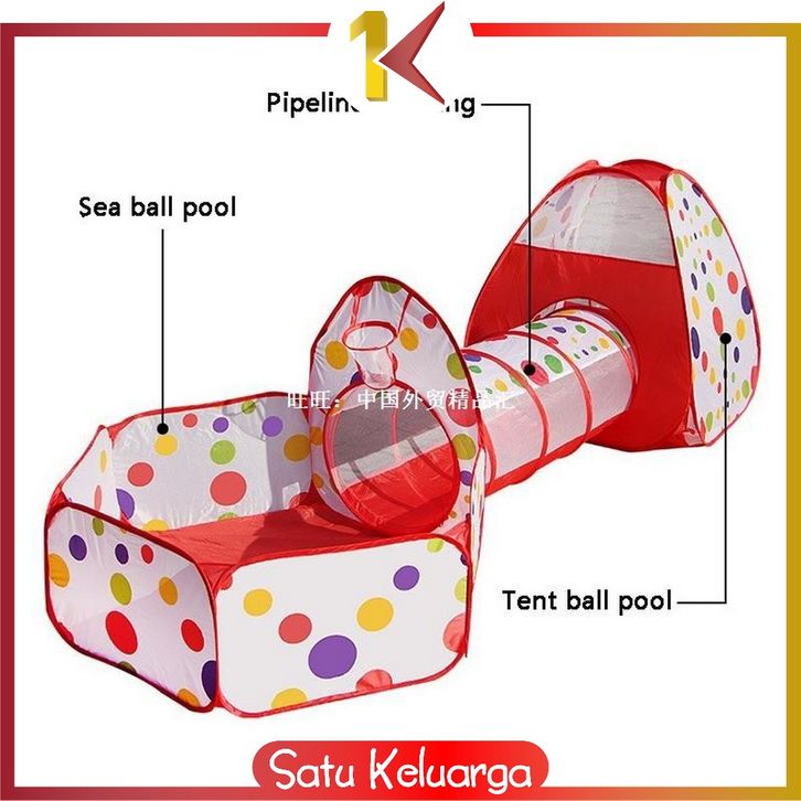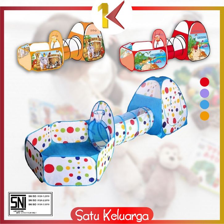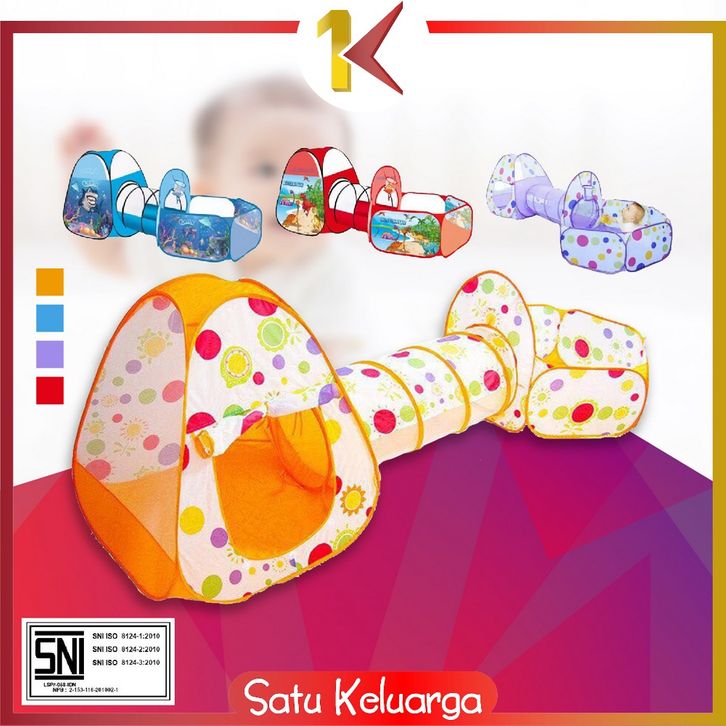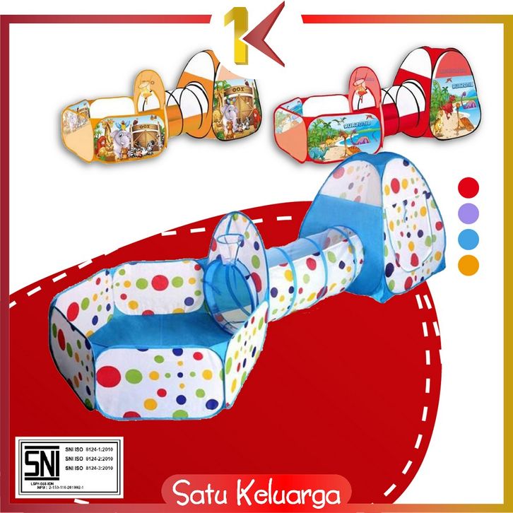 SK-M6 Mainan Tenda Anak Terowongan 4 in 1 + Kolam + Ring Basket Mainan Keranjang Mandi Bola Anak