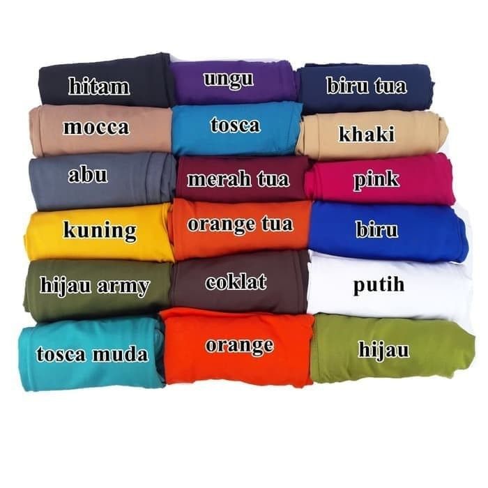 HITAM, NAVY, ABU TUA, COKLAT TUA, MAROON, HIJAU ARMY, CREAM, PUTIH, PINK FANTA, MOCCA