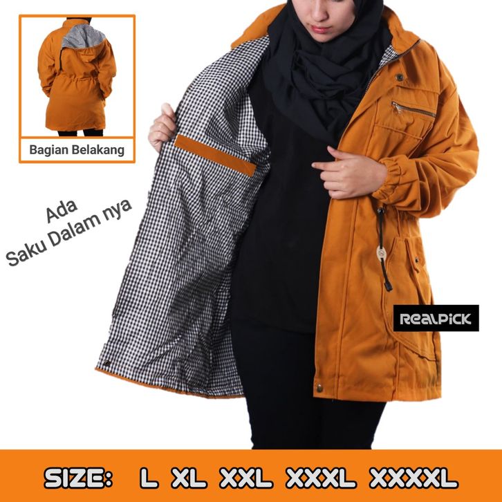 GRATIS ONGKIR Jaket Parka Wanita Jumbo Jaket Parka Cewek Ukuran Jumbo Bahan Baby Kanvas Tahan Angin Jaket Wanita Korea