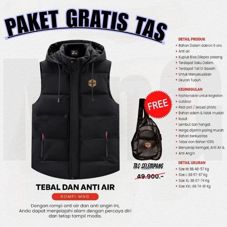 Rompi Taslan Waterproof Tebal Hoodie Pelindung Dada Original Unisex Terbaru Terlaris Pria Wanita