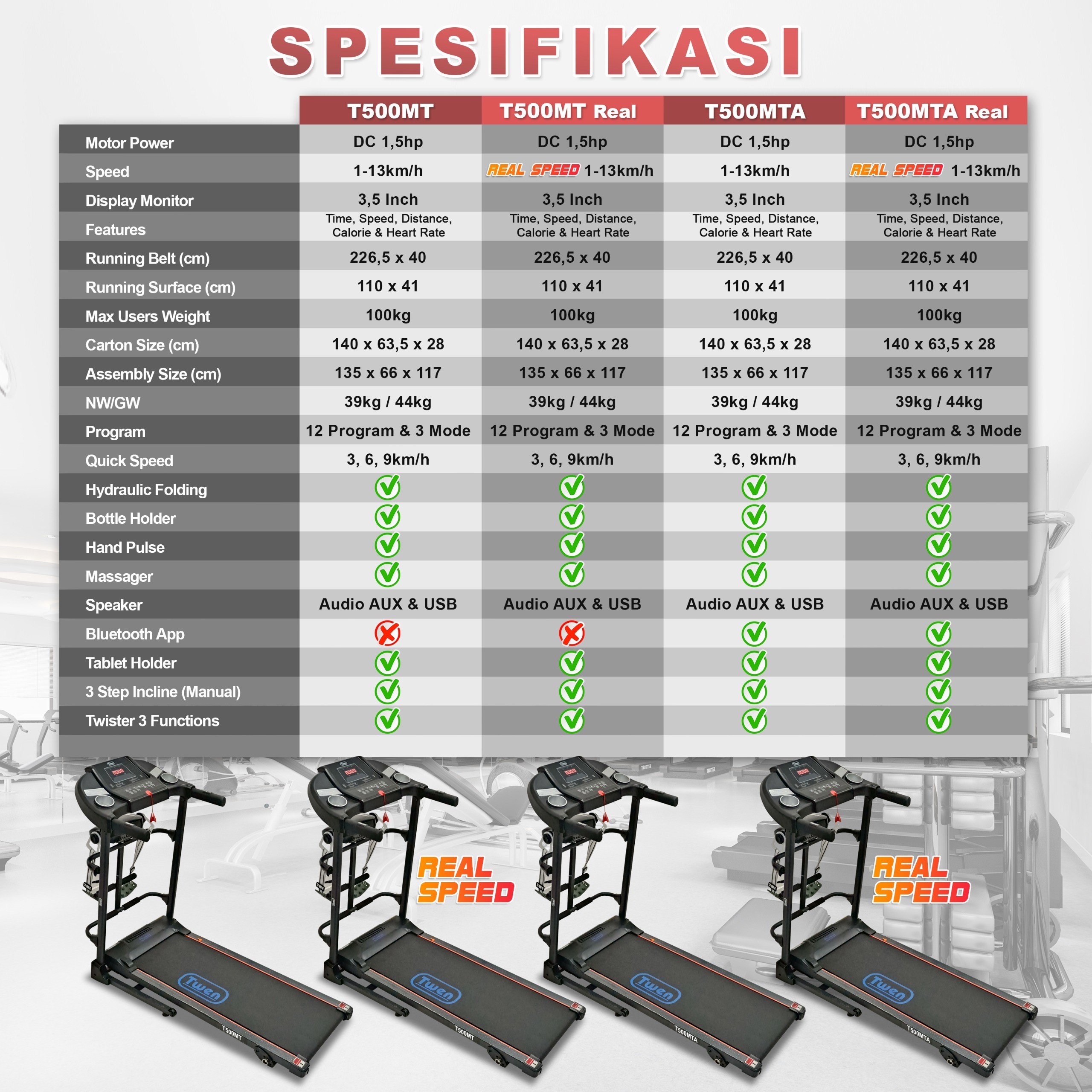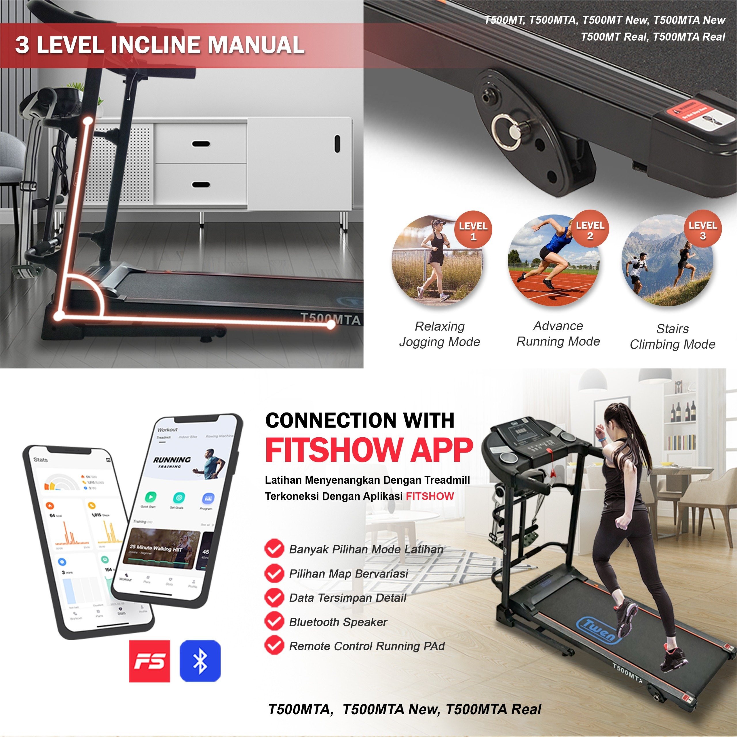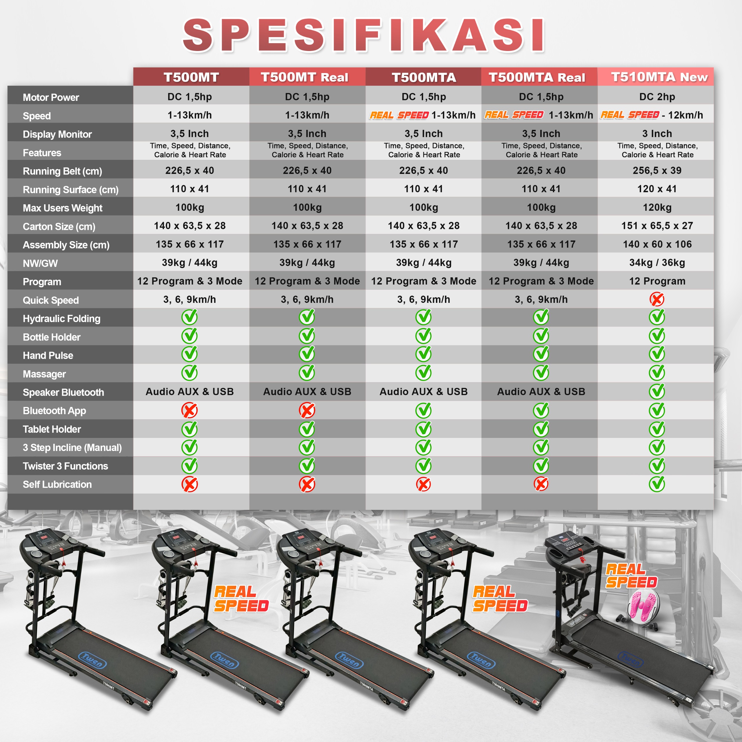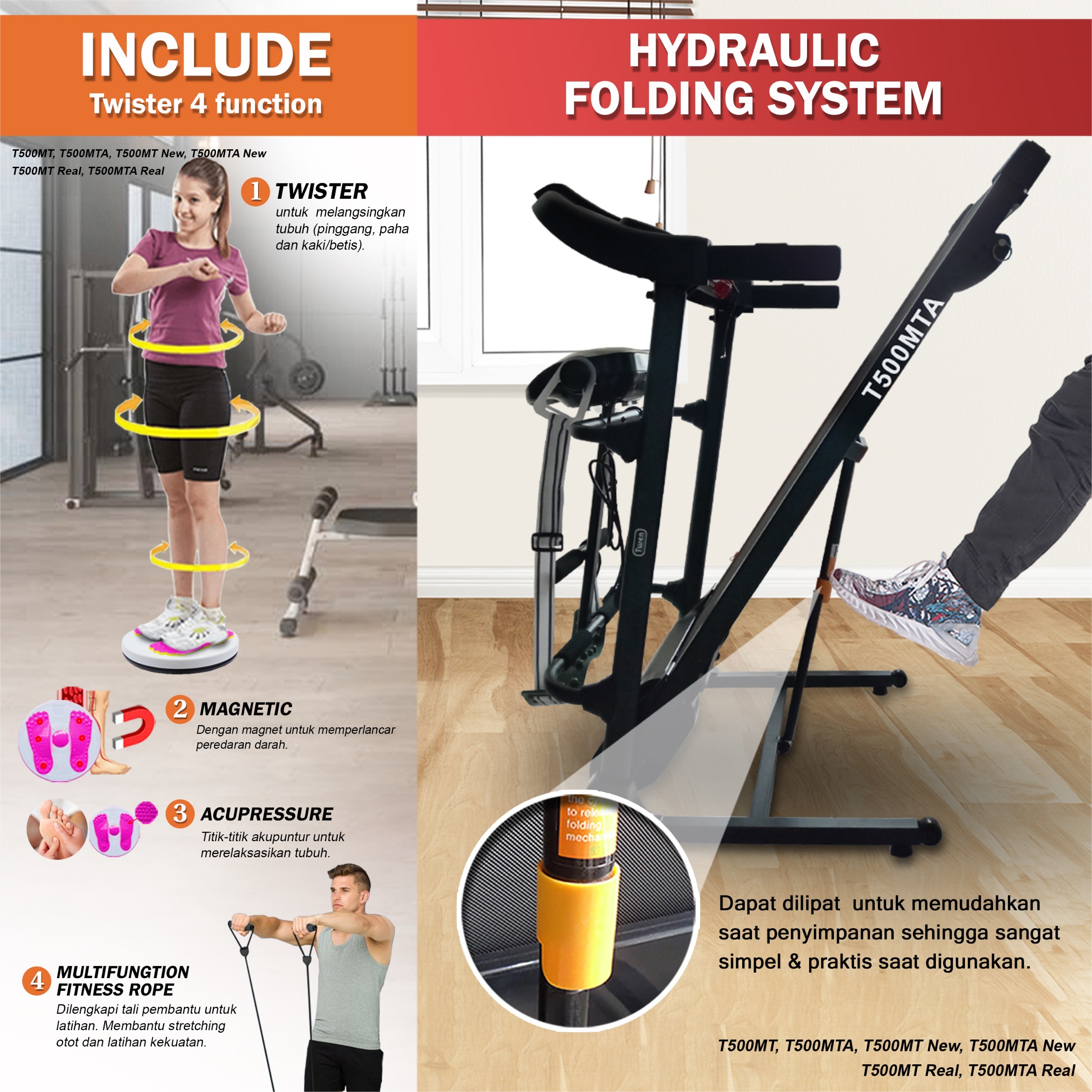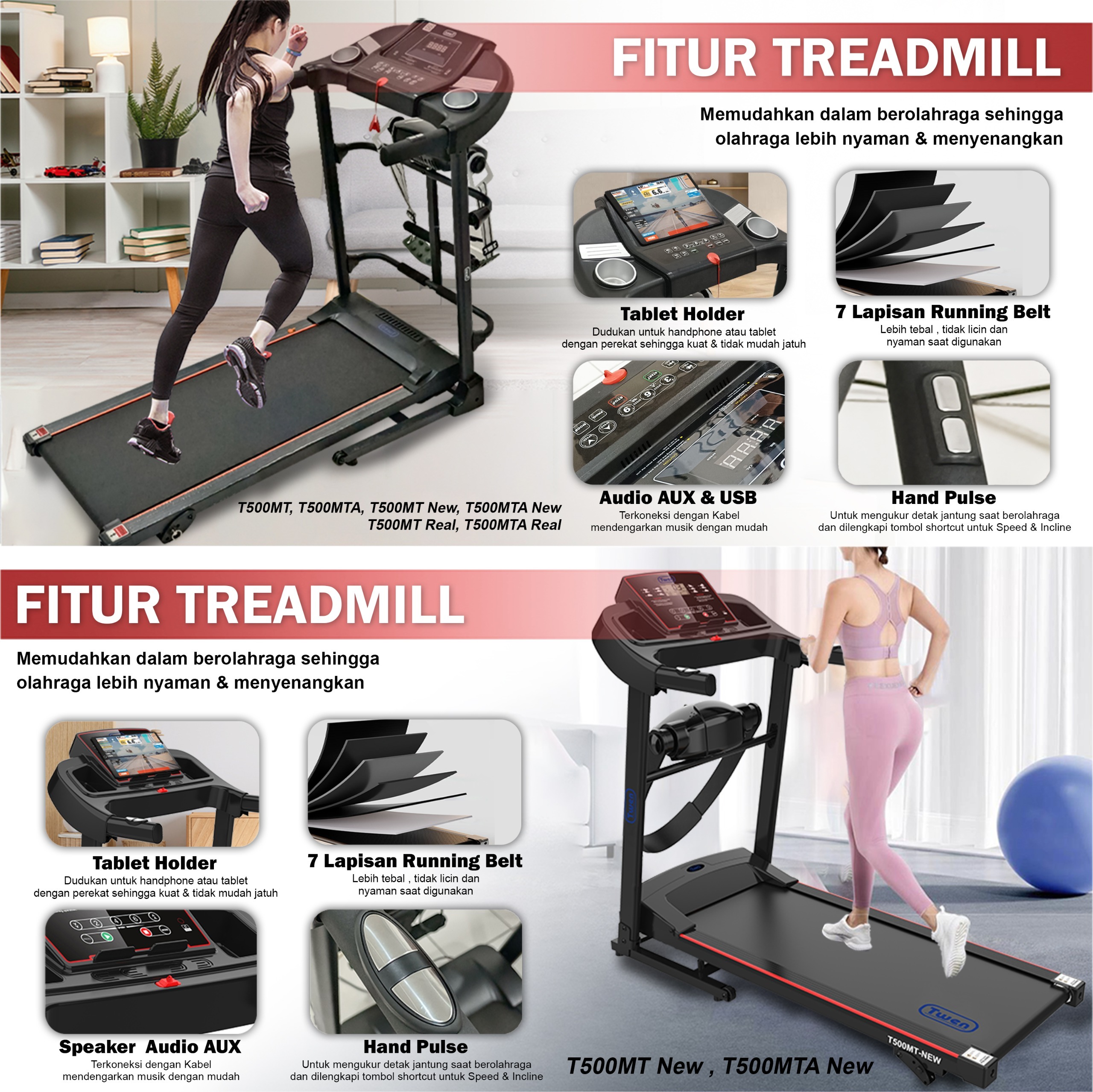 TWEN T500MT new T500MTA new Treadmill Listrik Treadmill Portable Treadmill Multifungsi Treadmil Lipat Treadmill Electric