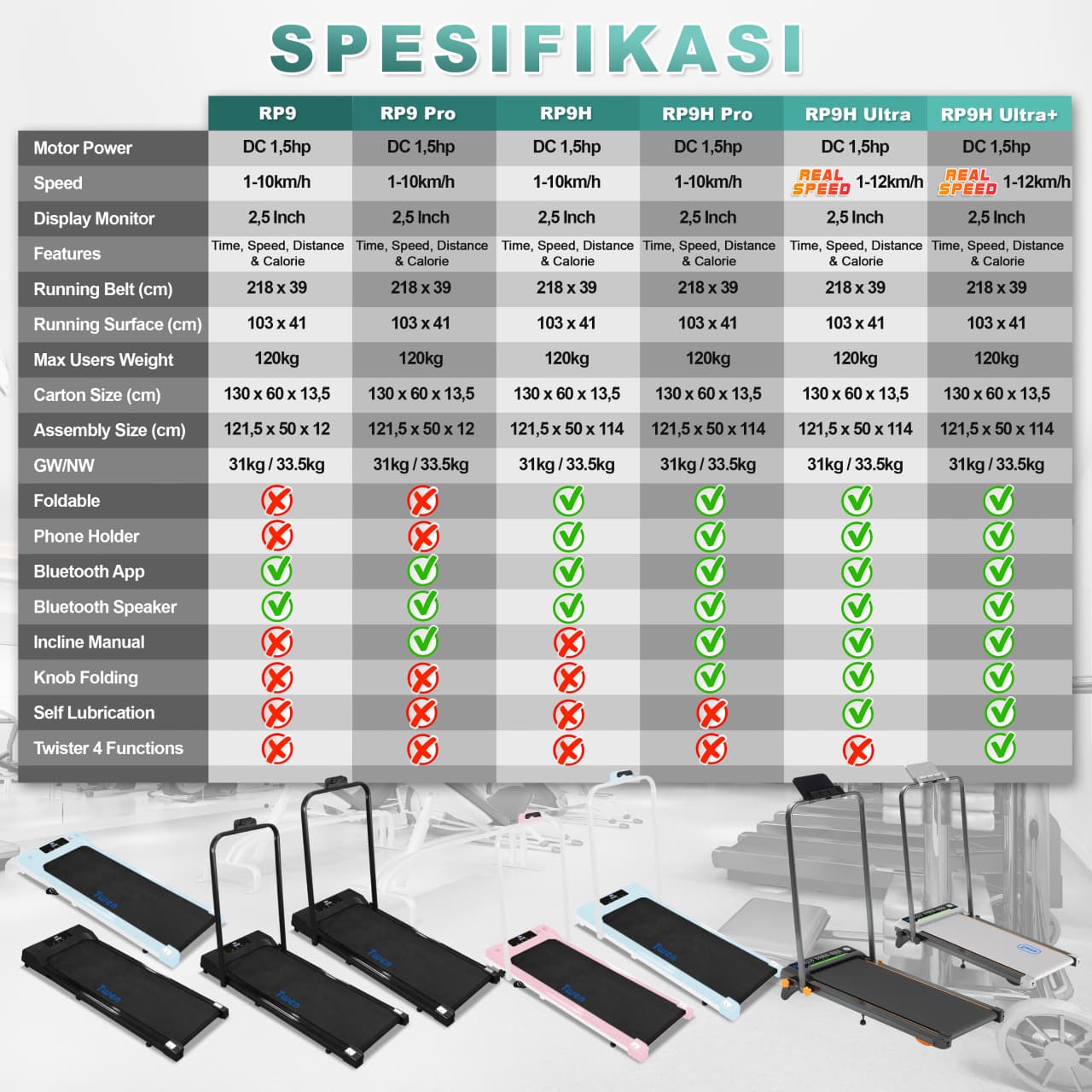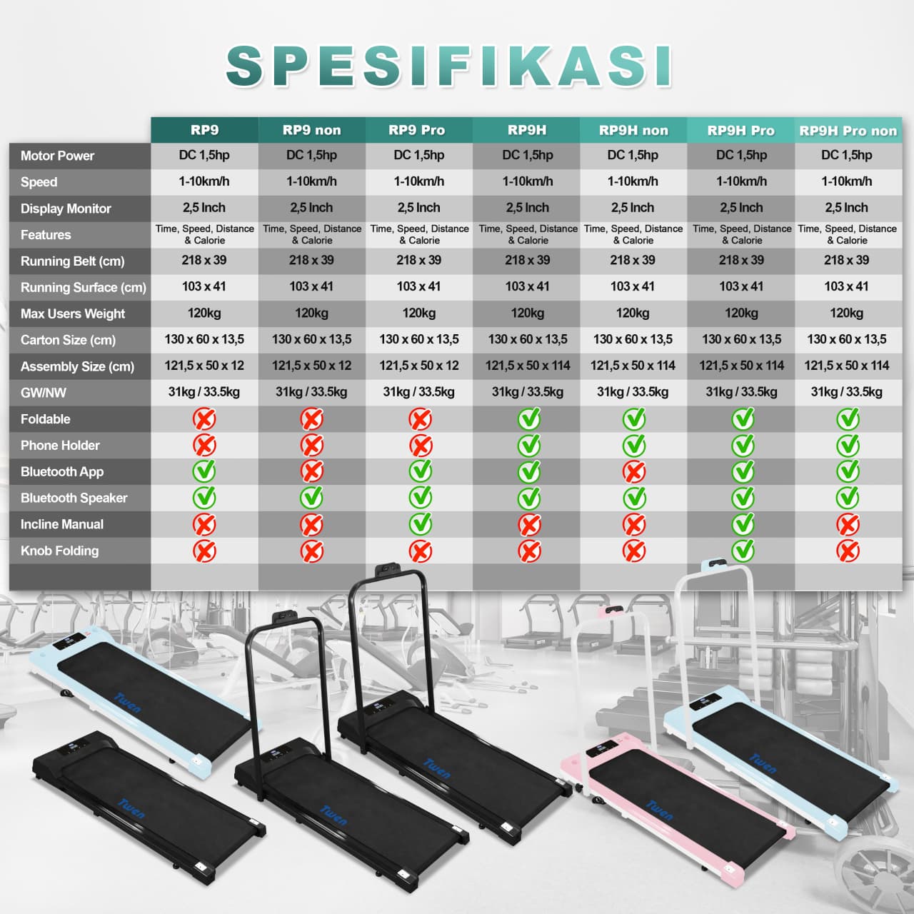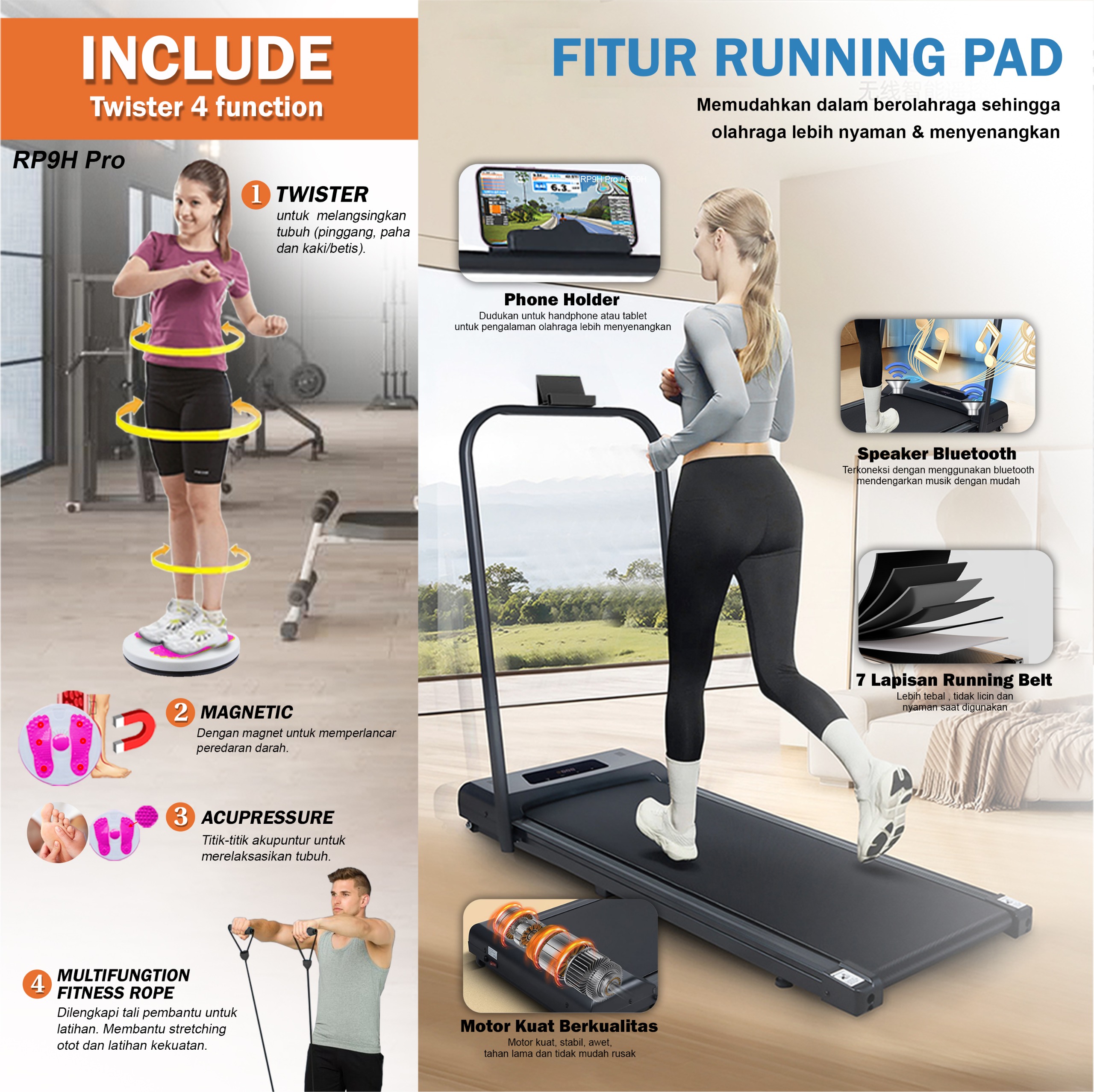 TWEN RP9 RP9H Pro Treadmill Listrik Treadmill Portable Treadmill Walking Pad Treadmill Running Pad Treadmill Multifungsi