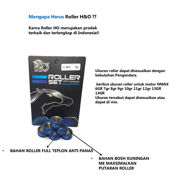 PAKET UPGRADE CVT NMAX AEROX XEON MIO M3 PER CVT 1500 RPM + ROLLER H&O ORIGINAL ORI - ROLER LOLER NMAX AEROX XEON MIO M3