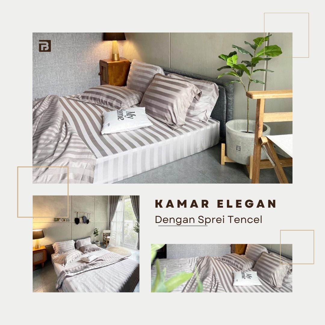 Bedcover Sprei Sutra Organik Tencel Motif Salur Uk 200x200 Uk 180x200 Uk 160x200