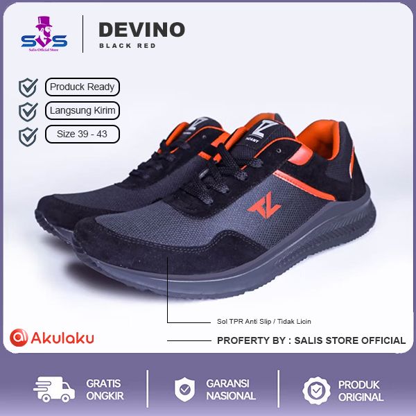 DEVINO BLACK RED | Salisstore - Tizany | Sepatu Sneakers Pria Casual Running Shoes ORIGINAL