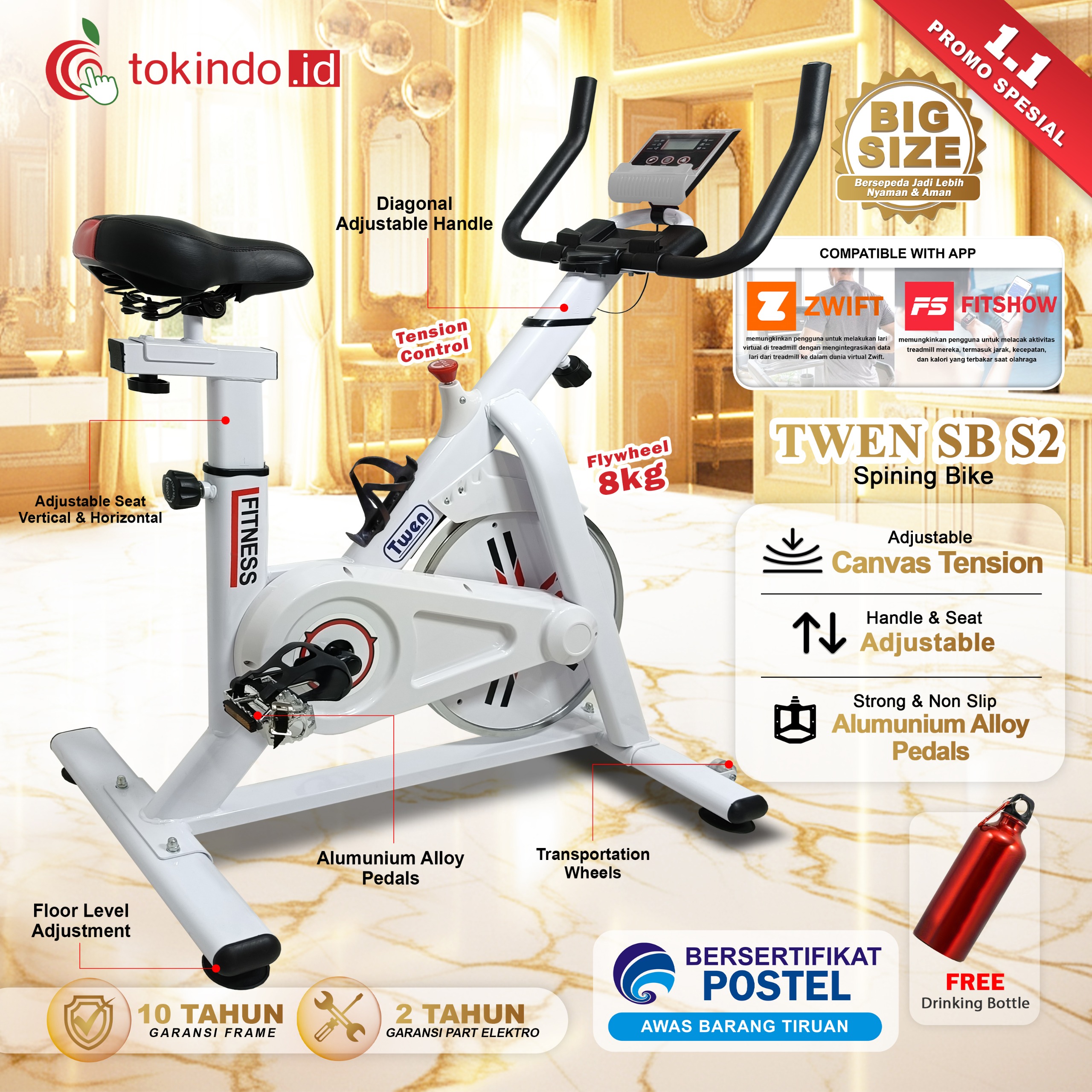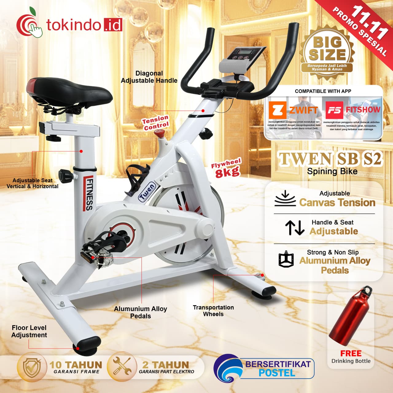 Twen Spin Bike Spinning Bike Indoor Sepeda Statis Fitness S2 Hitam Alat Olahraga