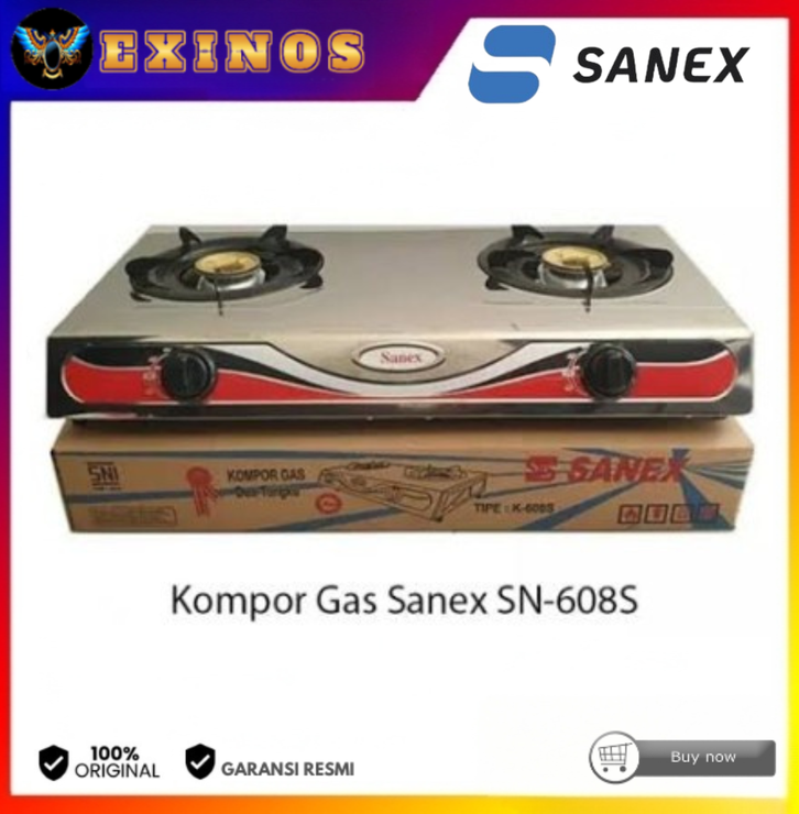Kompor Gas Sanex 2 Tungku K-608S Stainless Steel Api Biru 1.8 Meter - GARANSI RESMI