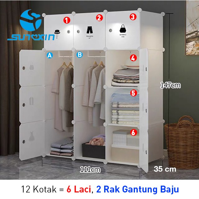 Lemari Plastik Portable Penyimpanan Baju Bongkar Pasang 8 Atau 12 Pintu Free ongkir|| bukan napolly akako club naiba