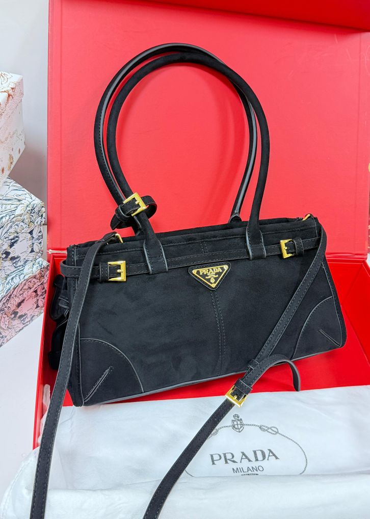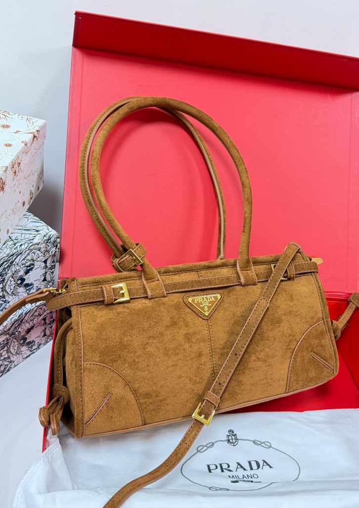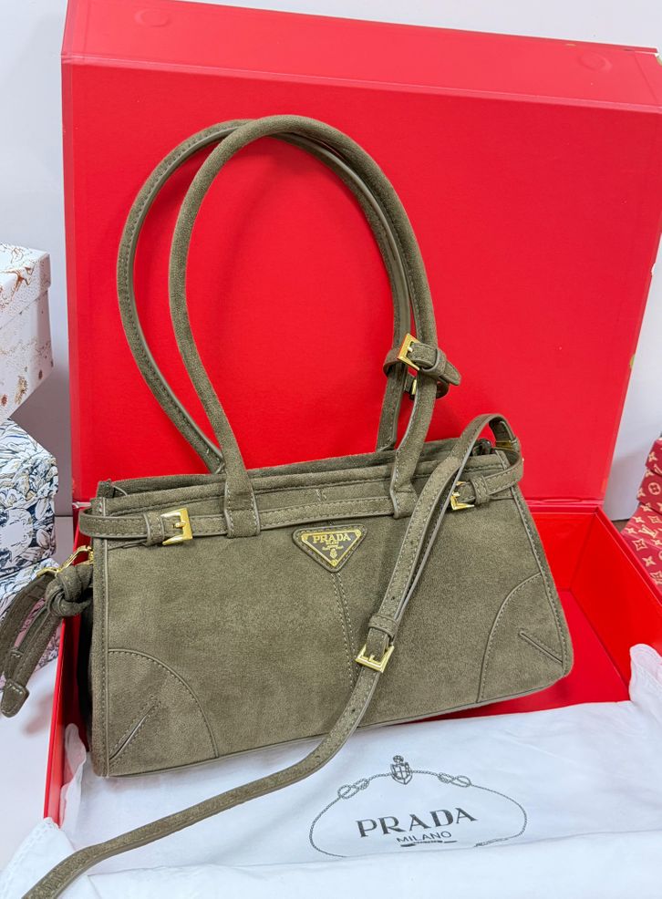 TAS WANITA PRADA BELT IN SUEDE PREMIUM/TAS PREDONG LONGHANDLE 32CM/TOTEBAG SHOULDERBAG TAS BRANDED TERBARU