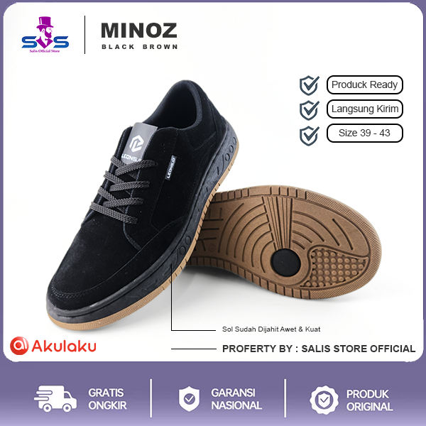 MINOZ BLACK BROWN | Salisstore- LEON| Sepatu Sneakers Pria Casual Suede ORIGINAL
