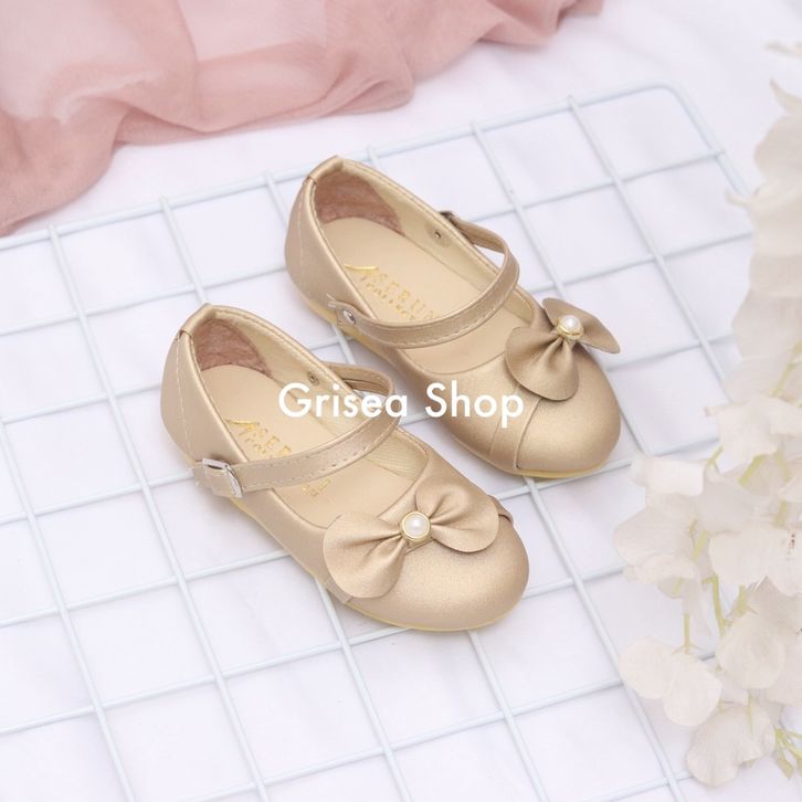 Grisea Sepatu Anak Perempuan Mira Mutiara Kelopak Daun / Flat Shoes Anak / Balet Anak Fashion