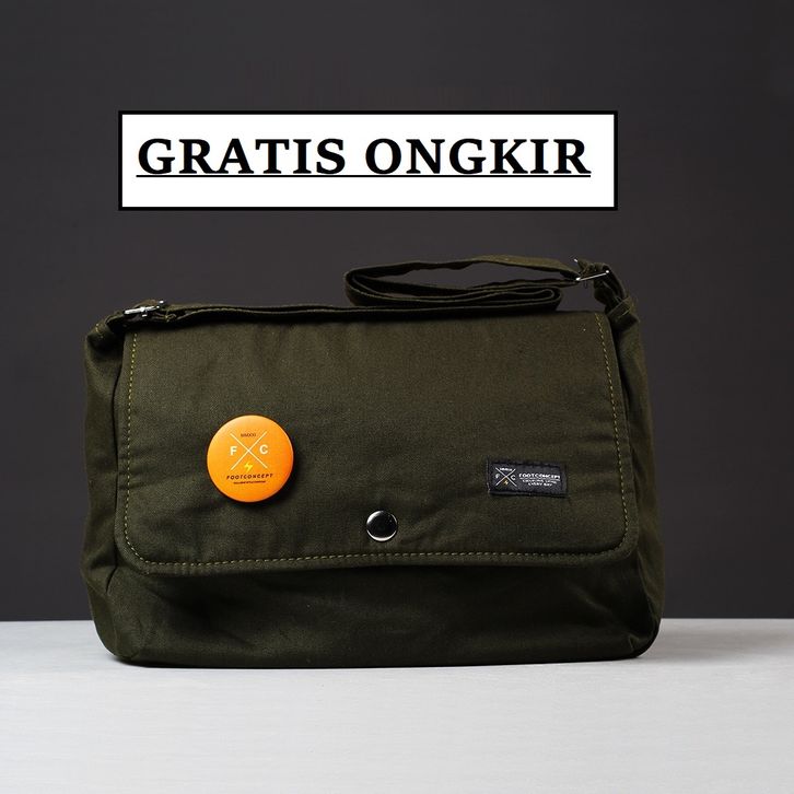 Tas Canvas Wanita Pria / SLINGBAG KANVAS LEMBUT SELEMPANG KEKINIAN - FOOTCONCEPT BONUS STIKER & PIN