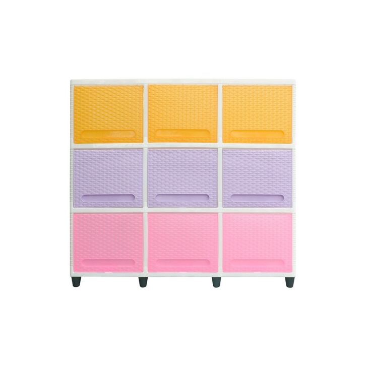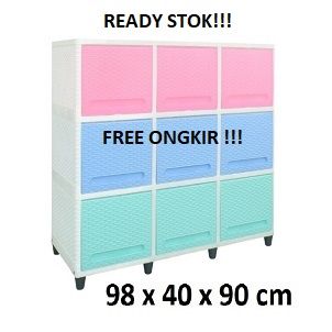 READY STOK Club Lemari plastik triple flip 3 susun meja TV Rotan Buffet TV Warna Warni 9 kotak