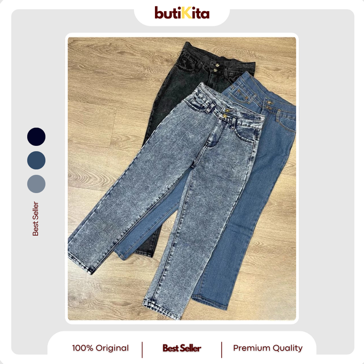 CELANA JEANS WANITA HIGH WAIST JUMBO KEKINIAN TERBARU CELANA LEVIS HIGHWAIST DOUBLE BUTTON BOYFRIEND KANCING 2 NEVILLE