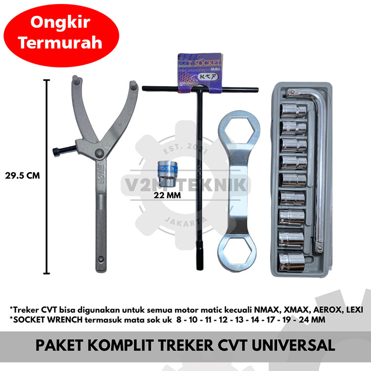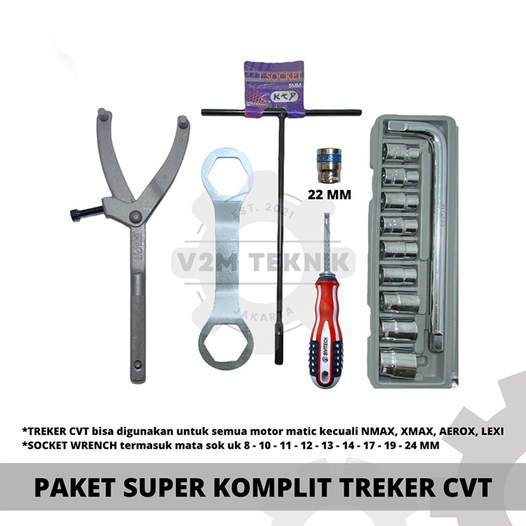 Paket Komplit Treker Cvt + Kunci 39x41 + Kunci T 8mm + Mata Sok Set 10 Pcs + Mata Sok 22 Mm Paket Tahanan Kopling