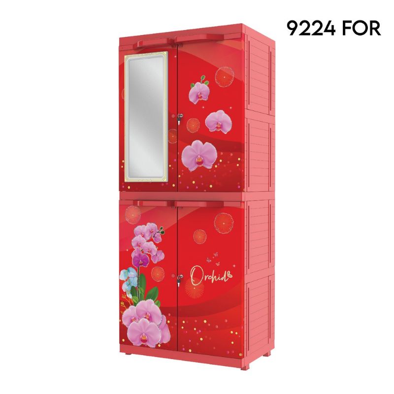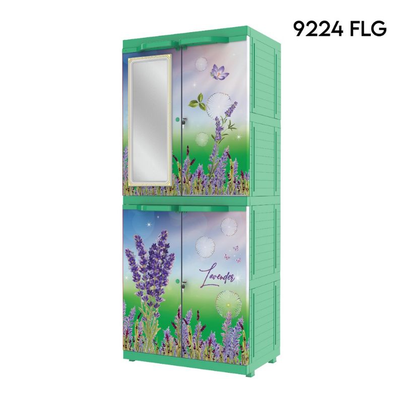 LEMARI PLASTIK PORTABLE-Lemari pakaian/lemari plastik motif bunga mirror 9224 flower FREE ONGKIR