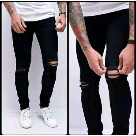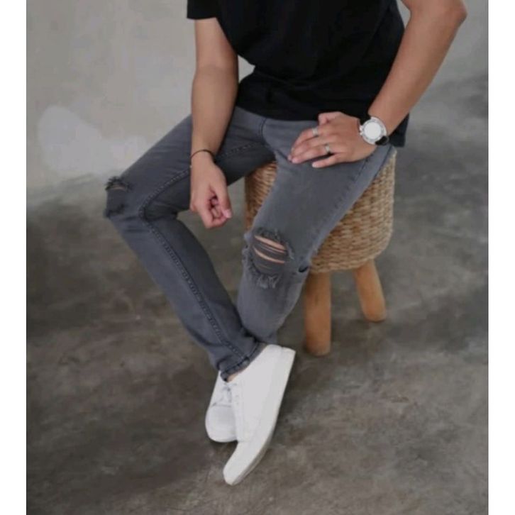 celana jeans denim panjang strecth sobek cakar kucing pria