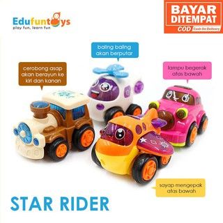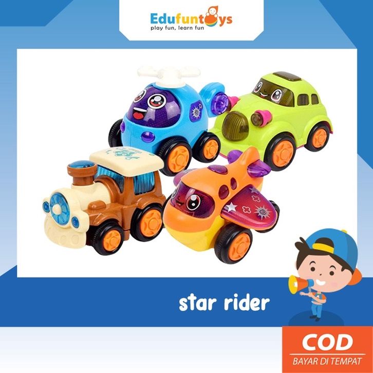 Edufuntoys - STAR RIDER inertia toys random/ mainan anak kendaraan/ mobil cartoon/ mobil pesawat kereta helikopter maina