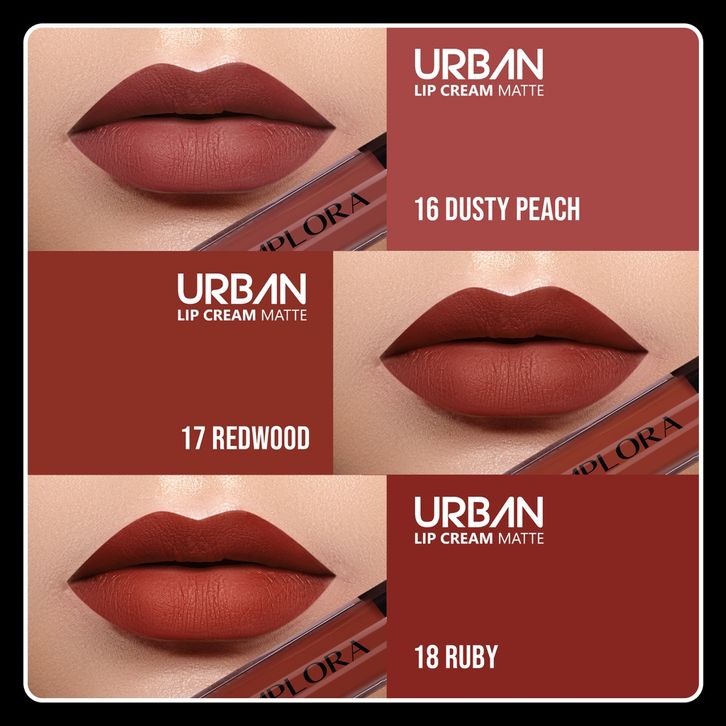 Dusky nude, Dark berry , Allure, Truffle mauve, Butter scotch, Red bean, Mideline, Lumiere, Pink late, Ginger bread, Brown sugar, Hazel nude, Salmon pink, Red wood, Red gala, Baby rose, Dasty peach, Rubby, Carolina