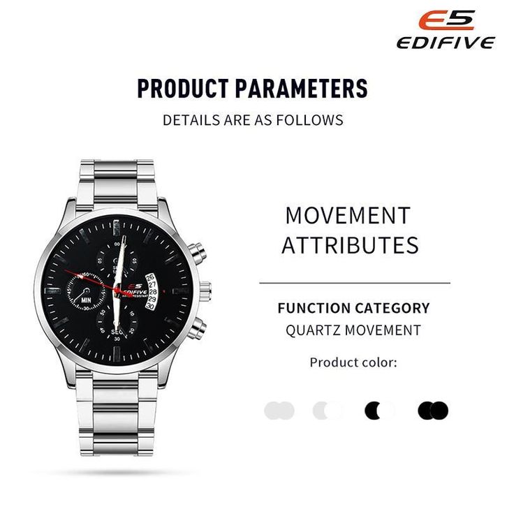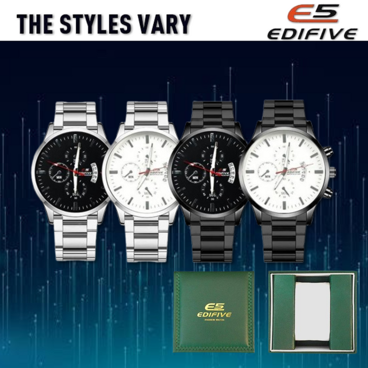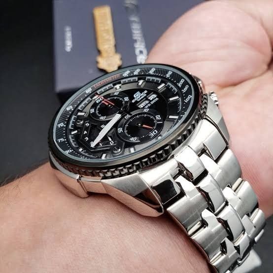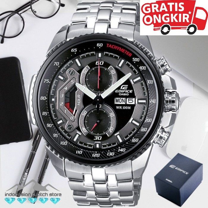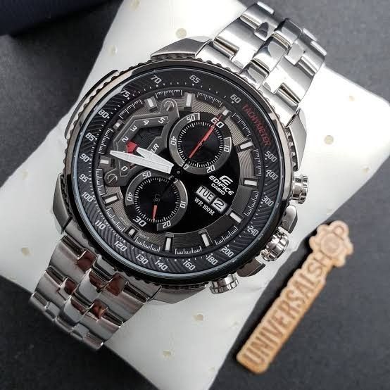 JAM TANGAN ORIGINAL BM CASIO EDIFICE EF 558 SILVER BLACK MATERIAL STAINLESS STEEL SET BOX