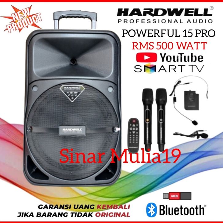 SPEAKER PORTABLE HARDWELL POWERFUL 15 PRO ORIGINAL BLUETOOTH 2 MIC WIRELESS