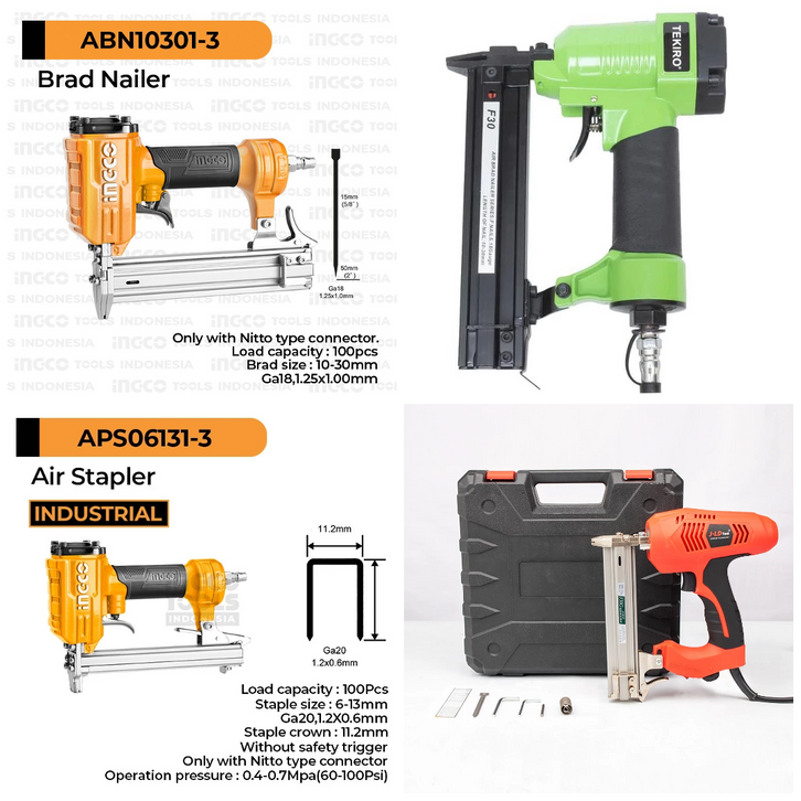 MESIN PAKU TMBK ANGIN 10-30MM / AIR BRAD NAILER INGCO ABN10301-3 / AIR NAILER MESIN PAKU TMBK STAPLES ANGIN INGCO ORI