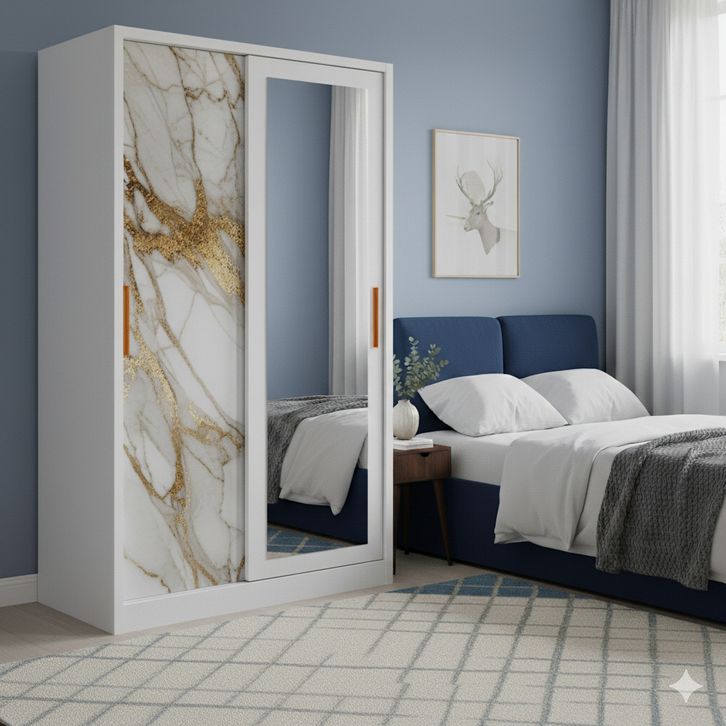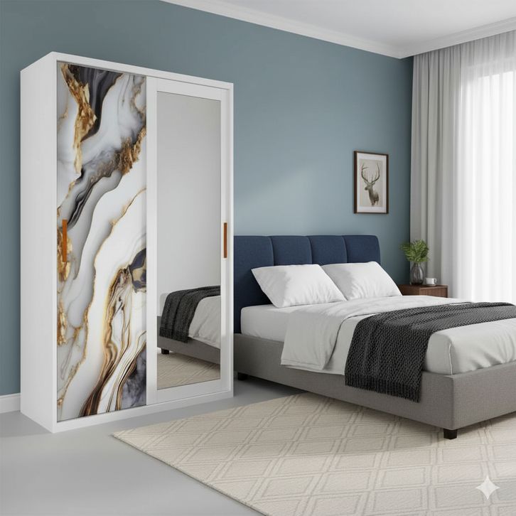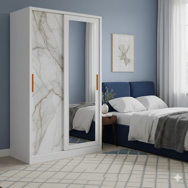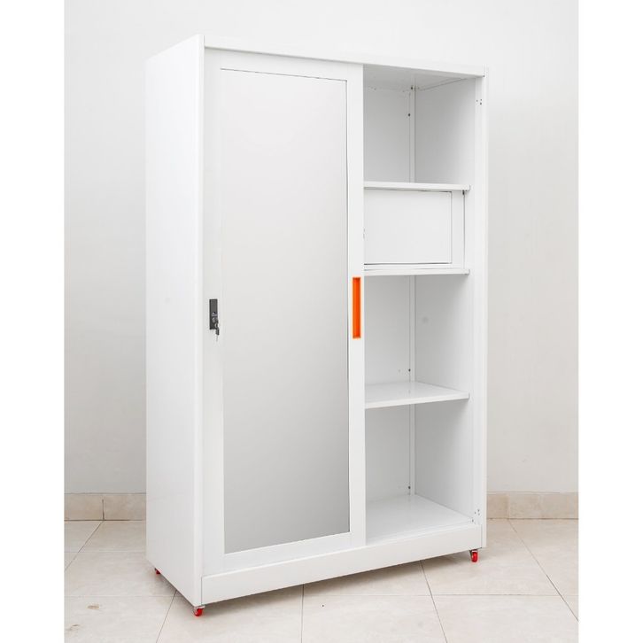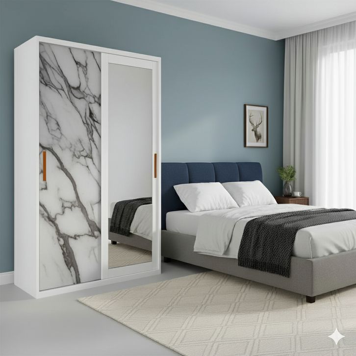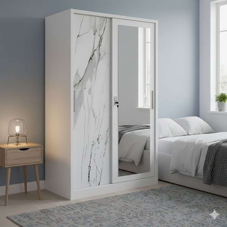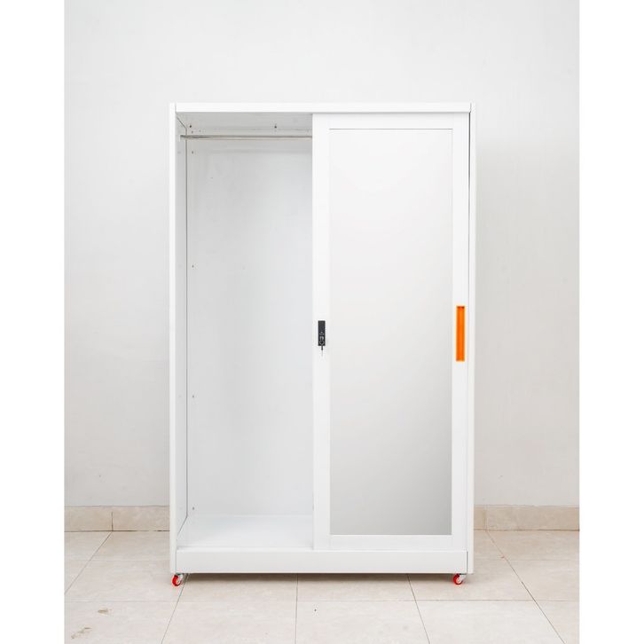 LEMARI PAKAIAN SLIDING BESI 2 PINTU GESER 120CM RAK BAJU GANTUNG CERMIN KACA FULL MOTIF TAHAN AIR ANTI RAYAP