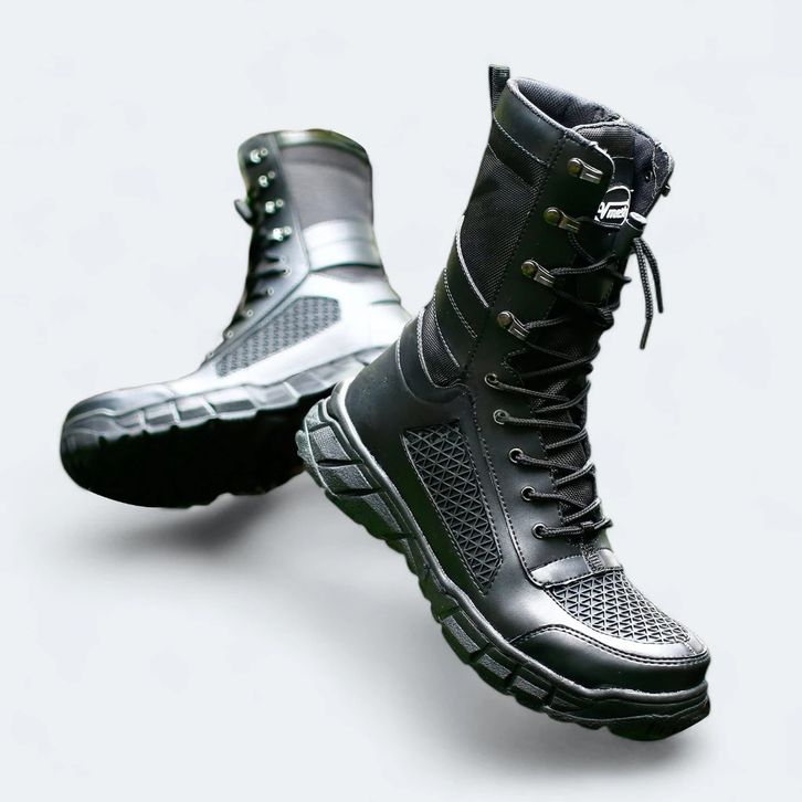 Sepatu PDL Boa Raider Sepatu PDH TNI Polri Polisi Brimob Security Satpam Kulit Sintetis Ujung Besi Hitam Doff
