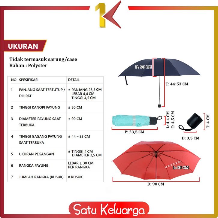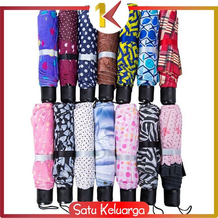 SK-C431 Payung Lipat Murah Motif Kotak Super Murah Kuat Kokoh Anti Angin Payung Lipat Warna-Warni Anti Sinar UV Matahari