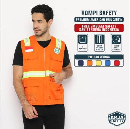 [ FREE LOGO SAFETY & BENDERA ] Rompi Safety, Rompi Safety Proyek Lapangan, Rompi Proyek