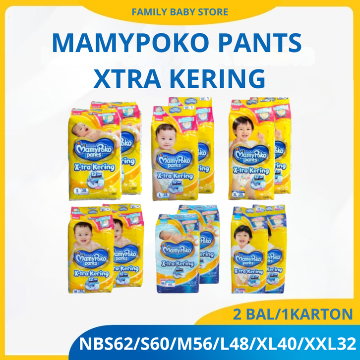 MAMYPOKO XTRA KERING PAKET 2 BAL UKURAN S 38 M 32 L 28 XL 26 XXL 24 NBS 44 POPOK BAYI PAMPERS PEMPES BARU LAHIR MURAH