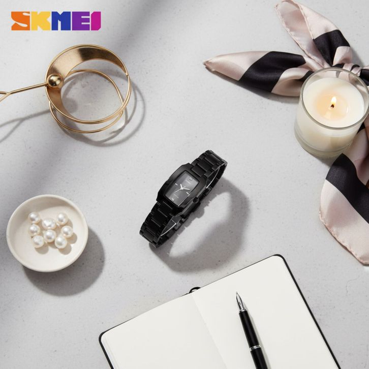 Jam Tangan Wanita Cewek Original Tali Rantai Skmei 1400 Anti Air Hitam